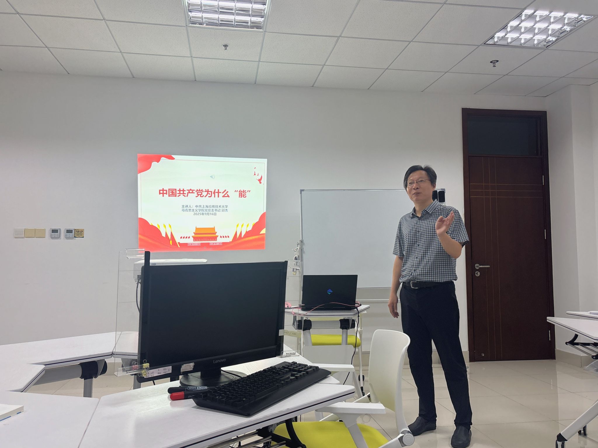 为进一步深入贯彻中央八项规定精神学习教育要求,结合纪念中国人民抗日战争暨世界反法西斯战争胜利80周年系列活动和学科专业特点,马克思主义学院精准规划新生党建教育主题,于9月16日在第六学科楼B405室开展入党启蒙专题讲座。马克思主义学院党总支书记邱杰授课,以《中国共产党为什么“能”》为题,为全体新生带来了一场兼具思想深度与实践温度的党课。