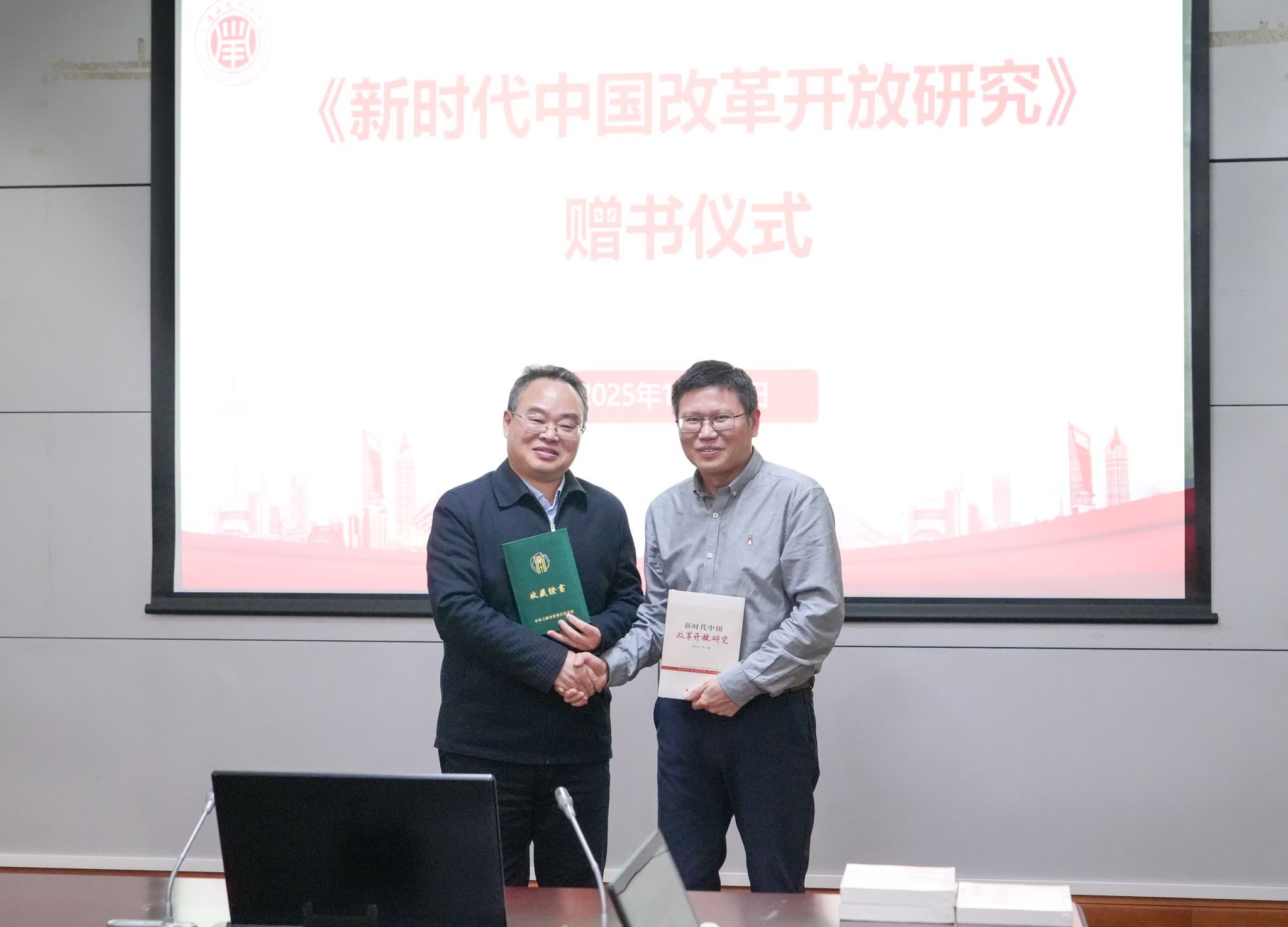 研讨会上,郭庆松代表《新时代中国改革开放研究》专著作者向中共上海市委党校图书馆、上海应用技术大学图书馆以及马克思主义学院赠书。上海应用技术大学马克思主义学院党总支书记邱杰主持专题研讨。