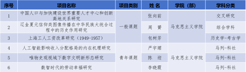 【喜报】马克思主义学院6项课题获批2025年度上海市哲学社会科学规划项目