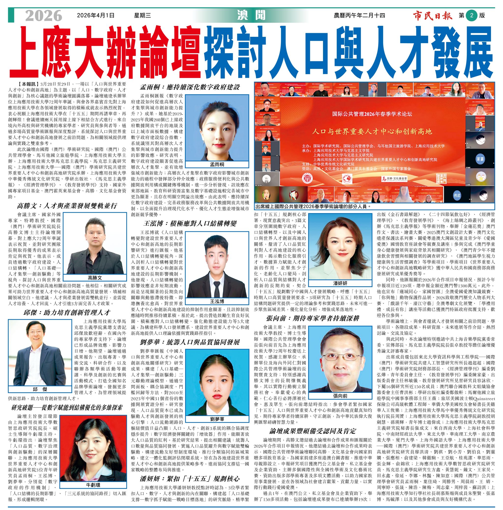 【国际公共管理论坛】第18期:学校联办沪澳马论坛贺72周年校庆 探索人口与世界人才中心和创新高地