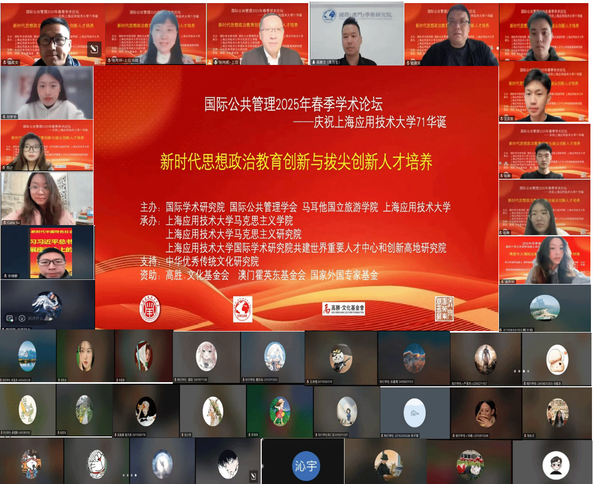 日前,由国际学术研究院、国际公共管理学会、马耳他国立旅游学院、上海应用技术大学主办,上海应用技术大学马克思主义学院、马克思主义研究院、上海应用技术大学—国际学术研究院共建世界重要人才中心和创新高地研究院承办,上海应用技术大学中华优秀传统文化研究院、学研出版社、《经济管理学刊》、《教育发展学刊》支持,国家外国专家项目基金、澳门霍英东基金会、高胜·文化基金会资助之国际公共管理2025春季学术论坛圆满落幕。