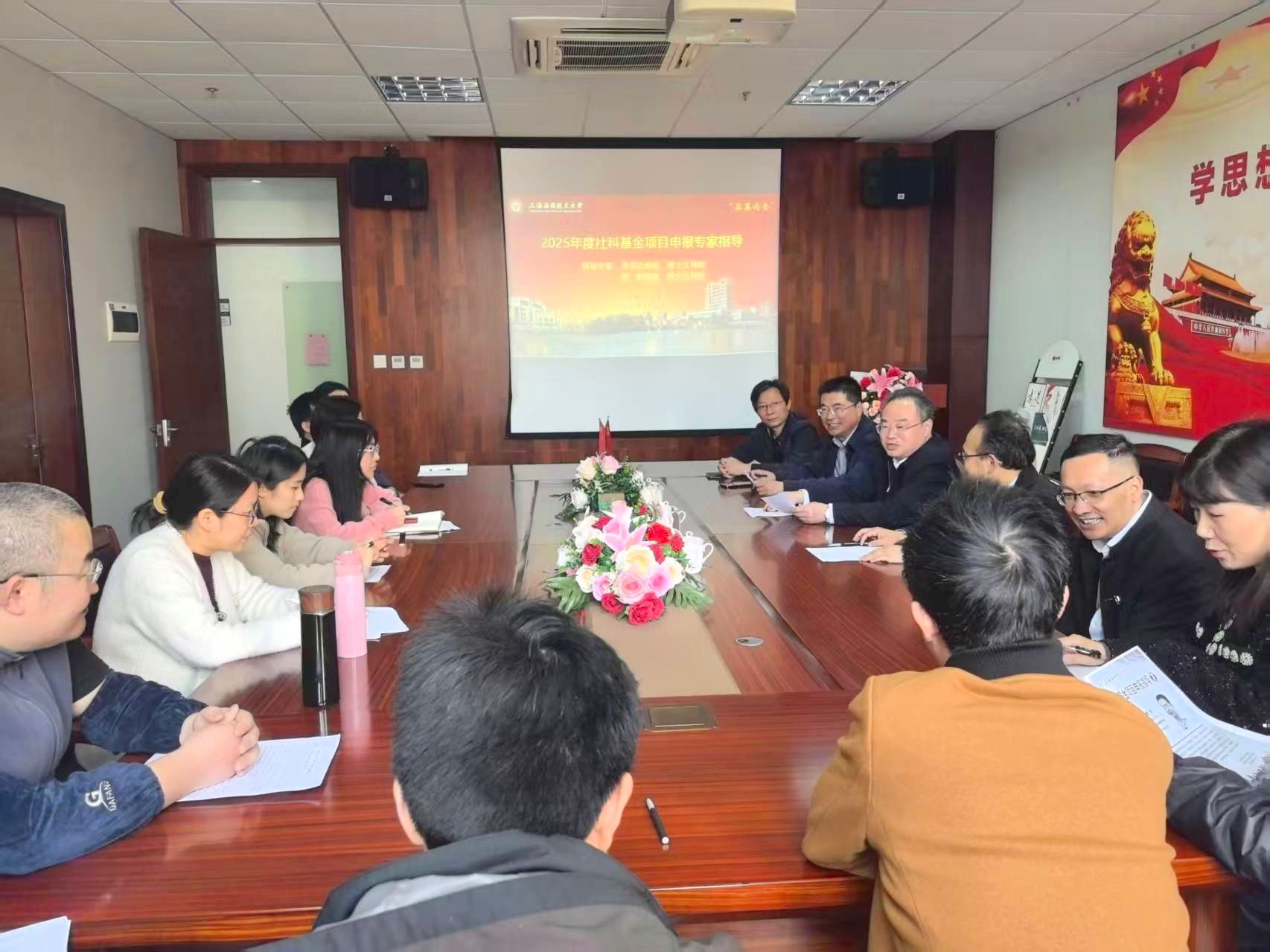 4月11日,马克思主义学院举办2025年国家社科基金申报专家指导会。特邀校党委书记郭庆松教授领衔的专家团队开展“靶向辅导”,中共上海市委党校汤荣光教授、华东师范大学赵勇教授莅临指导,为21位申报教师提供一对一精准指导。马克思主义学院领导班子出席参加,学院党总支副书记牛亏环主持,共同打造科研攻关“强磁场”。