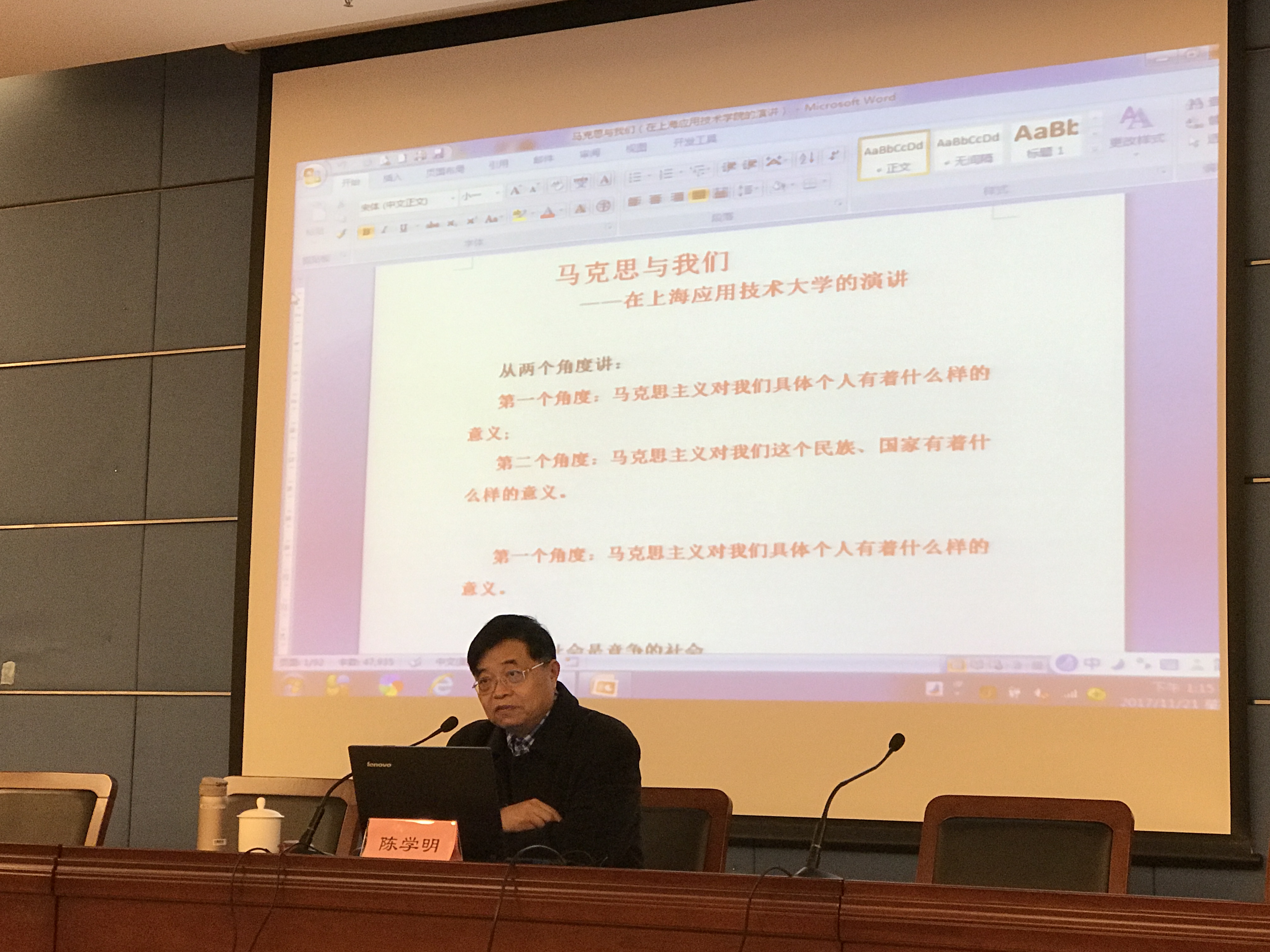 随后陈学明以“马克思主义与我们”为题作报告。我校马克思主义学院常务副院长邱杰主持,马克思主义学院教师、辅导员及知行学社成员近100人参加了报告会。