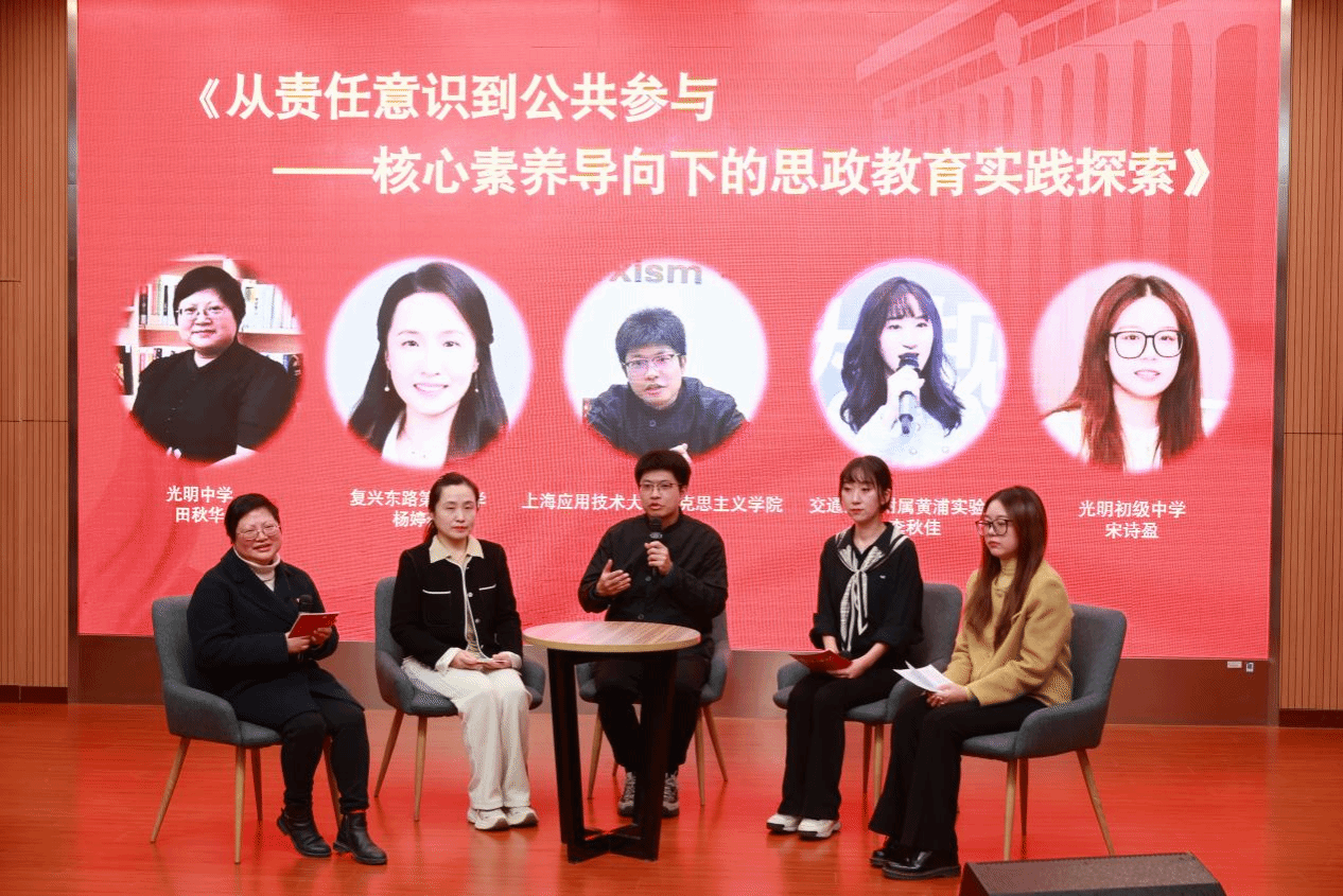 为深入贯彻落实习近平总书记关于思政课建设的重要指示精神,推进大中小学思政课一体化建设走深走实,12月18日,由上海市教师教育学院(上海市教育委员会教学研究室)与外滩学区大中小学思政课一体化建设委员会联合主办的“2025年外滩学区大中小学思政课一体化教学研讨活动”在上海市光明中学顺利举办。马克思主义学院副院长周贇受邀参会,与上海市教师教育学院于漪教育教学思想研究部副部长俞慧文、黄浦区教育学院党总支书记副院长魏薇等学界专家、一线教师代表齐聚一堂,共探思政育人协同创新路径。