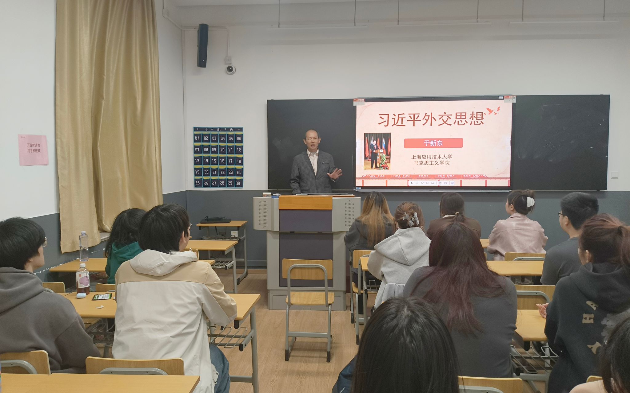 近日,上海应用技术大学马克思主义学院面向全体本科生,首开《习近平外交思想专论》系列课程,课程主讲人为马克思主义学院于新东教授。课程推出后,在校园内引起热烈反响。