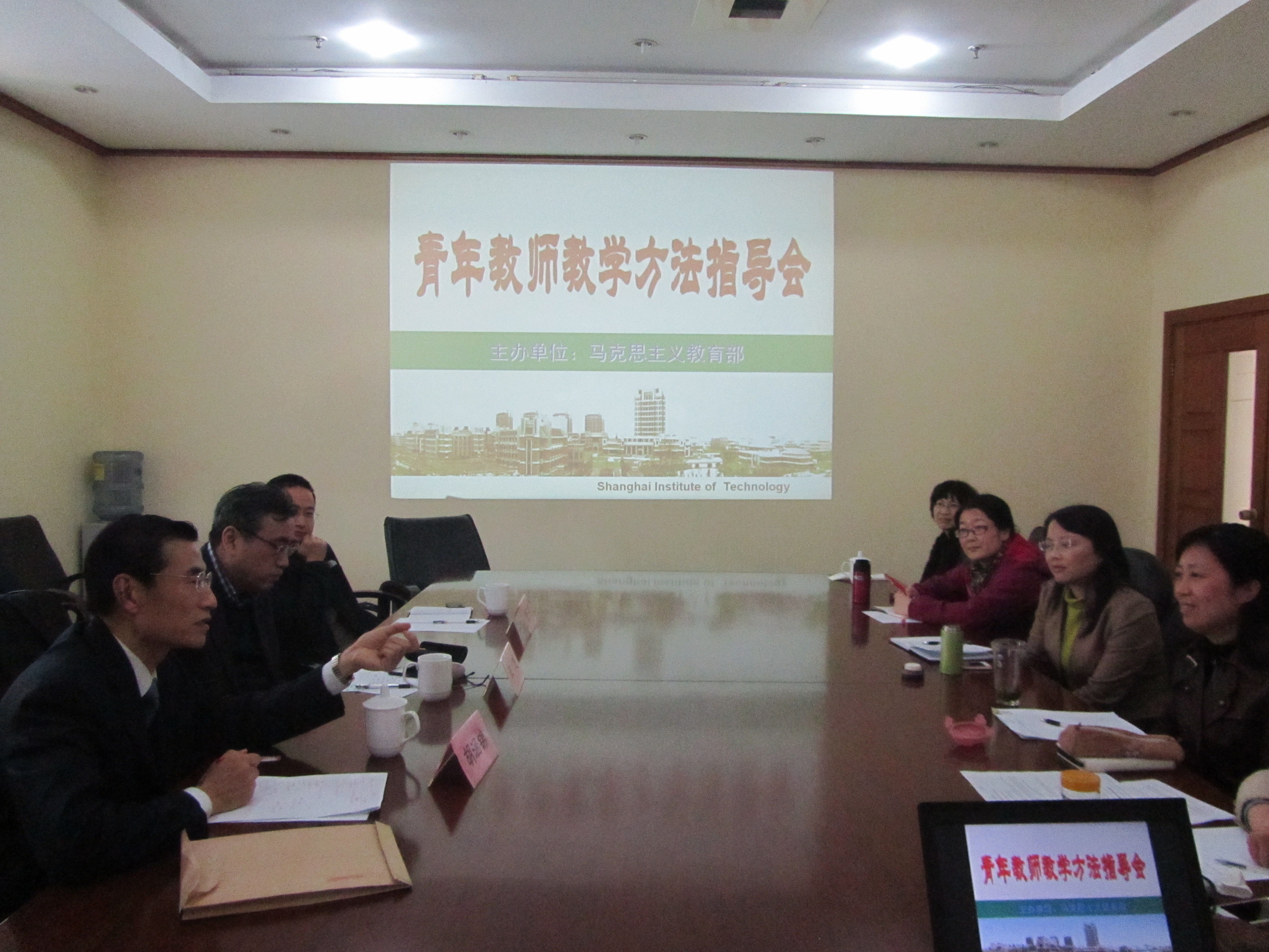 为进一步帮助青年教师快速提升教学水平和教学质量,不断提高思政课教学的吸引力和有效性, 2014年3月21日,马克思主义教育部在漕宝路校区召开“青年教师教学方法指导会”,顺利完成了“教研室内部说课——部门教师教学观摩研讨——业内专家评课指导”教学改革推进活动的第三部曲。华东师范大学宋进教授、上海交通大学胡涵锦教授、《思想理论研究》副主编曹宁华研究员,应邀现场点评,分别指导。会议由马克思主义教育部主任李国娟教授主持。