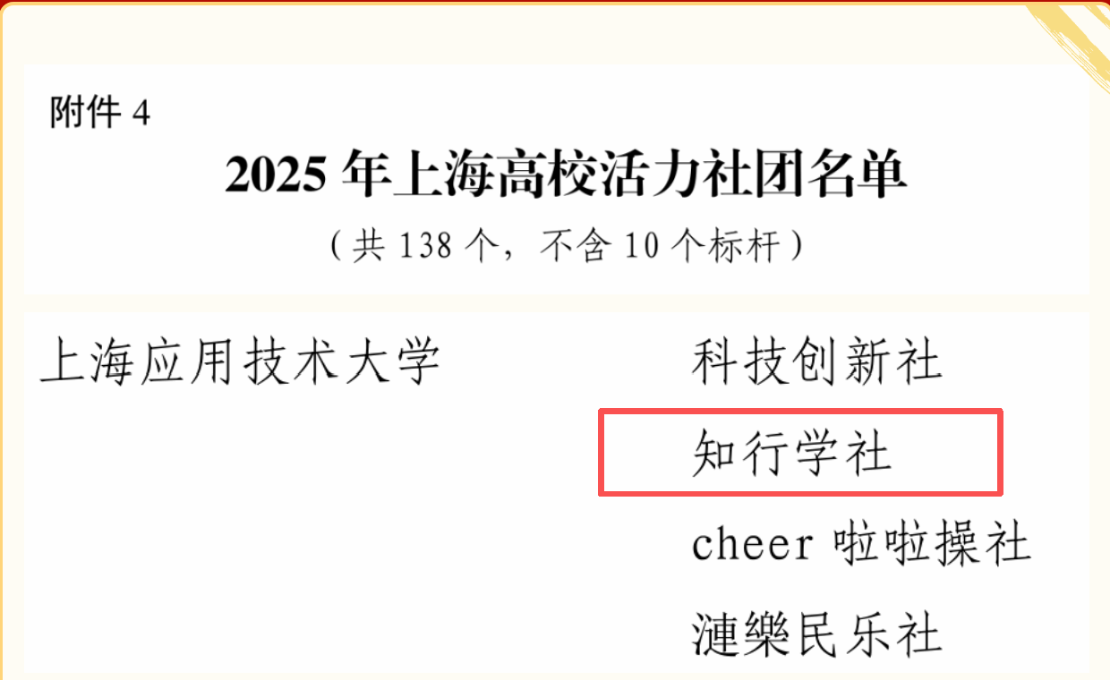 【喜报】知行学社成功入选2025年上海高校活力社团