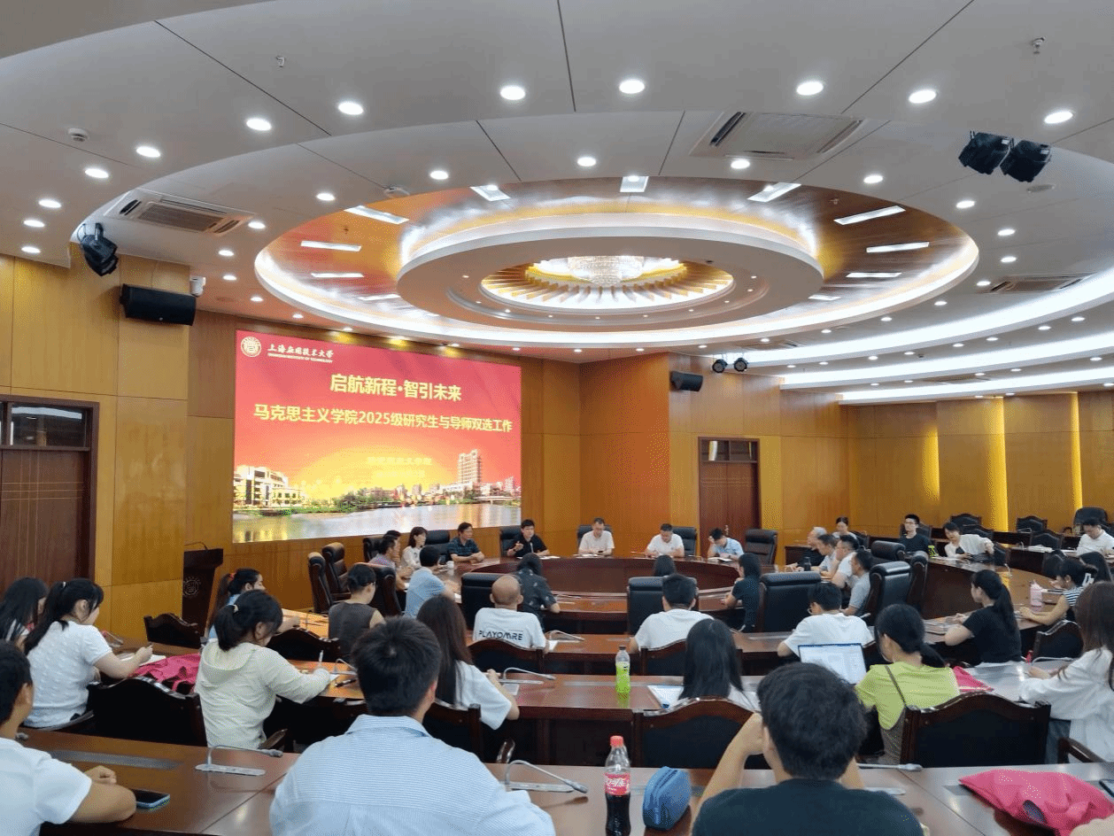 为顺利推进马克思主义学院首届研究生的教育工作,9月2日下午,马克思主义学院2025级研究生导师双选会在上海应用技术大学奉贤校区第六学科楼B410会议室举行。马克思主义学院党总支书记邱杰、党总支副书记牛亏环、本科生学院副院长姜超、全体导师、2025级研究生共同参加。会议由教学副院长周赟主持。