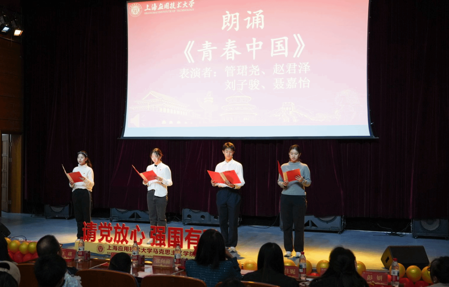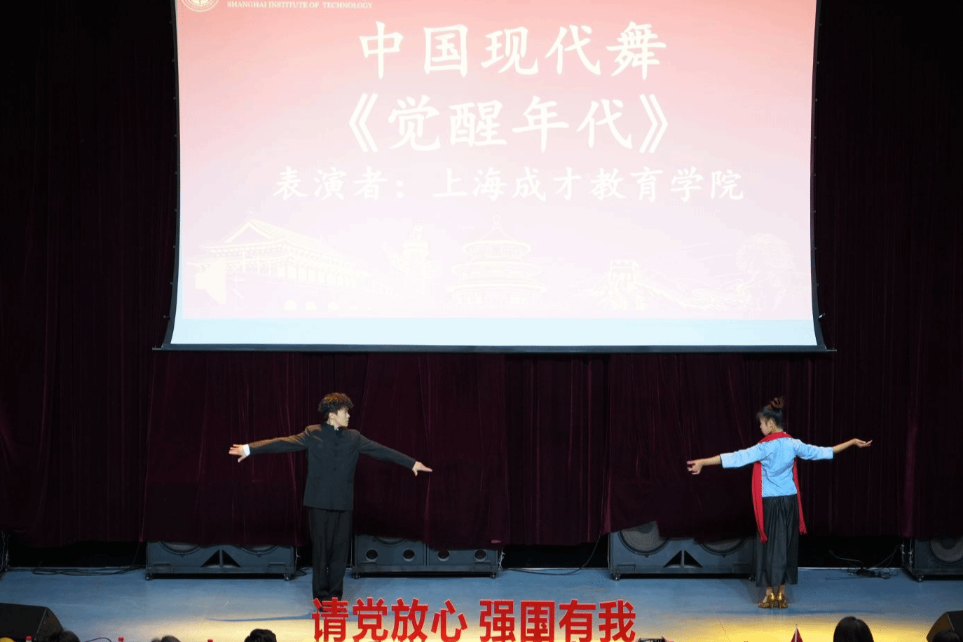 上海成才教育学院带来的中国现代舞《觉醒年代》诉说着那段艰辛奋斗的历史。马院研究生王杨带来的魔术表演《创造奇迹》,以奇幻表象承载多元真挚情感,用超乎想象的变幻打破常规魔术认知。知行学社管珺尧、赵君泽、刘子骏、聂嘉怡同学带来的朗诵《青春中国》,用饱含炽热深沉的家国情怀,传递着对祖国未来发展的无限憧憬。