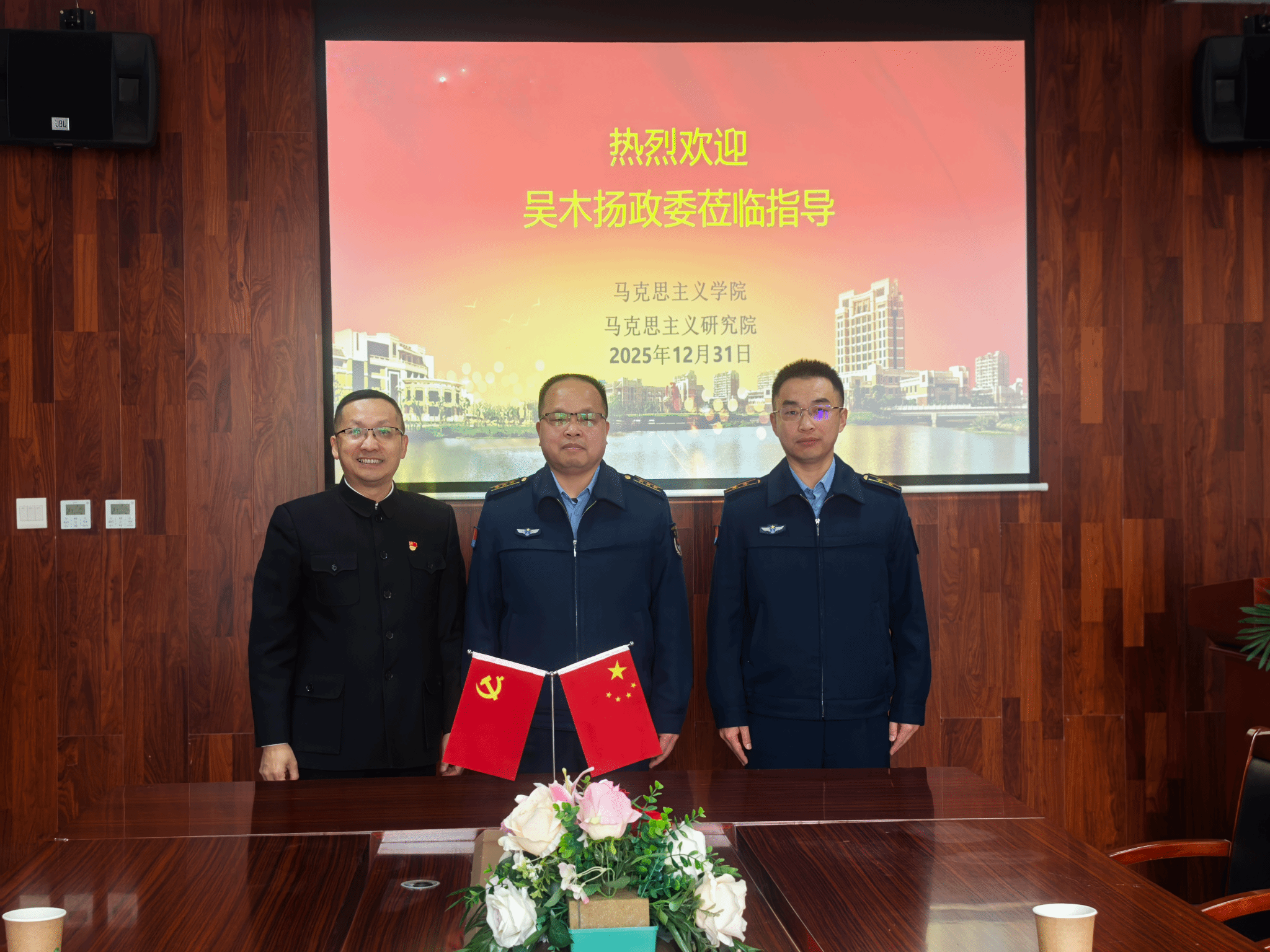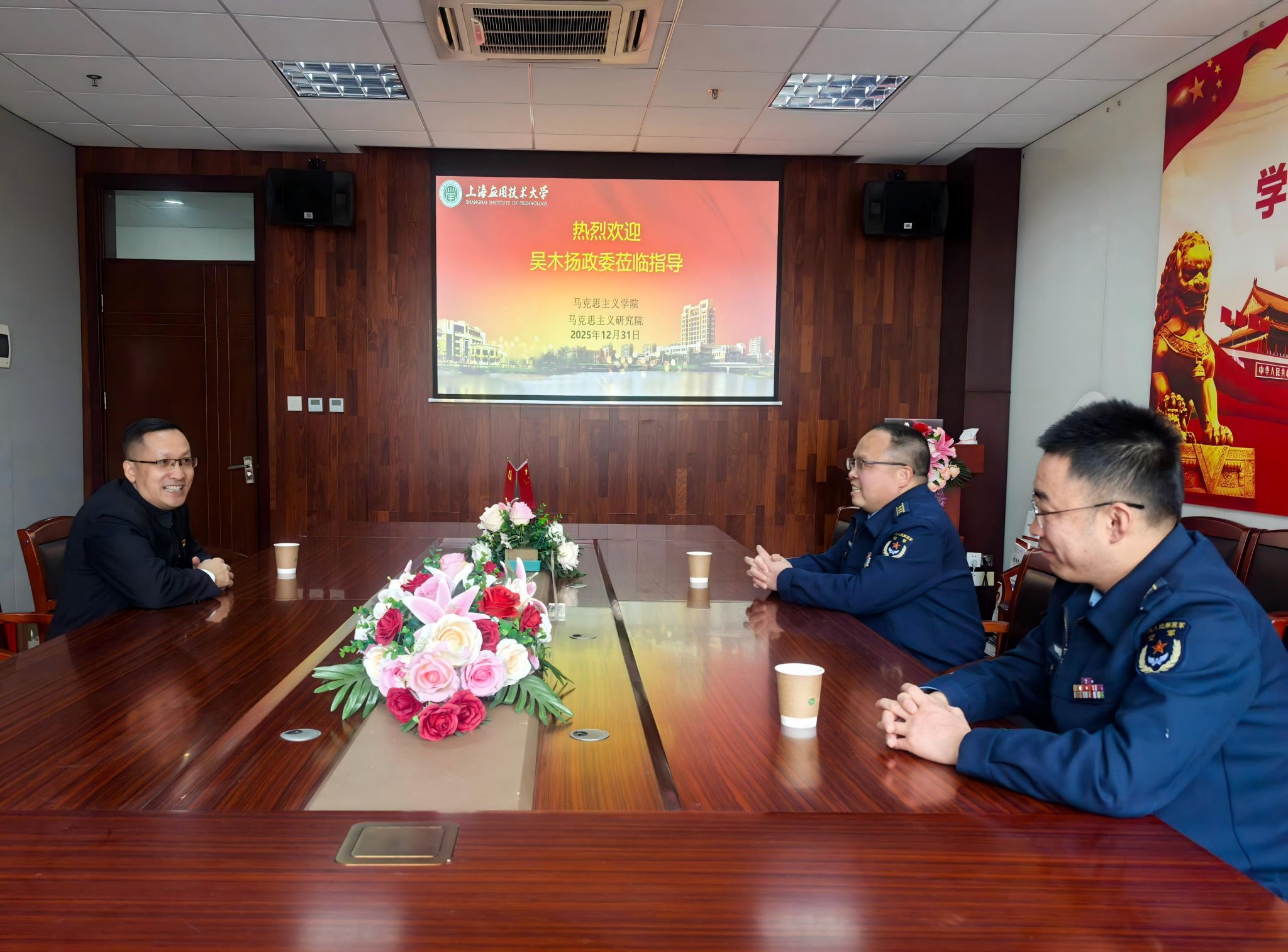2025年12月31日,空军驻奉某部上校吴木扬政委、政治处中校李帅一行到访上海应用技术大学马克思主义学院、马克思主义研究院,双方围绕深化“大思政课”协同育人、拓展国防教育实践路径等议题展开深入交流,并达成多项合作共识。
