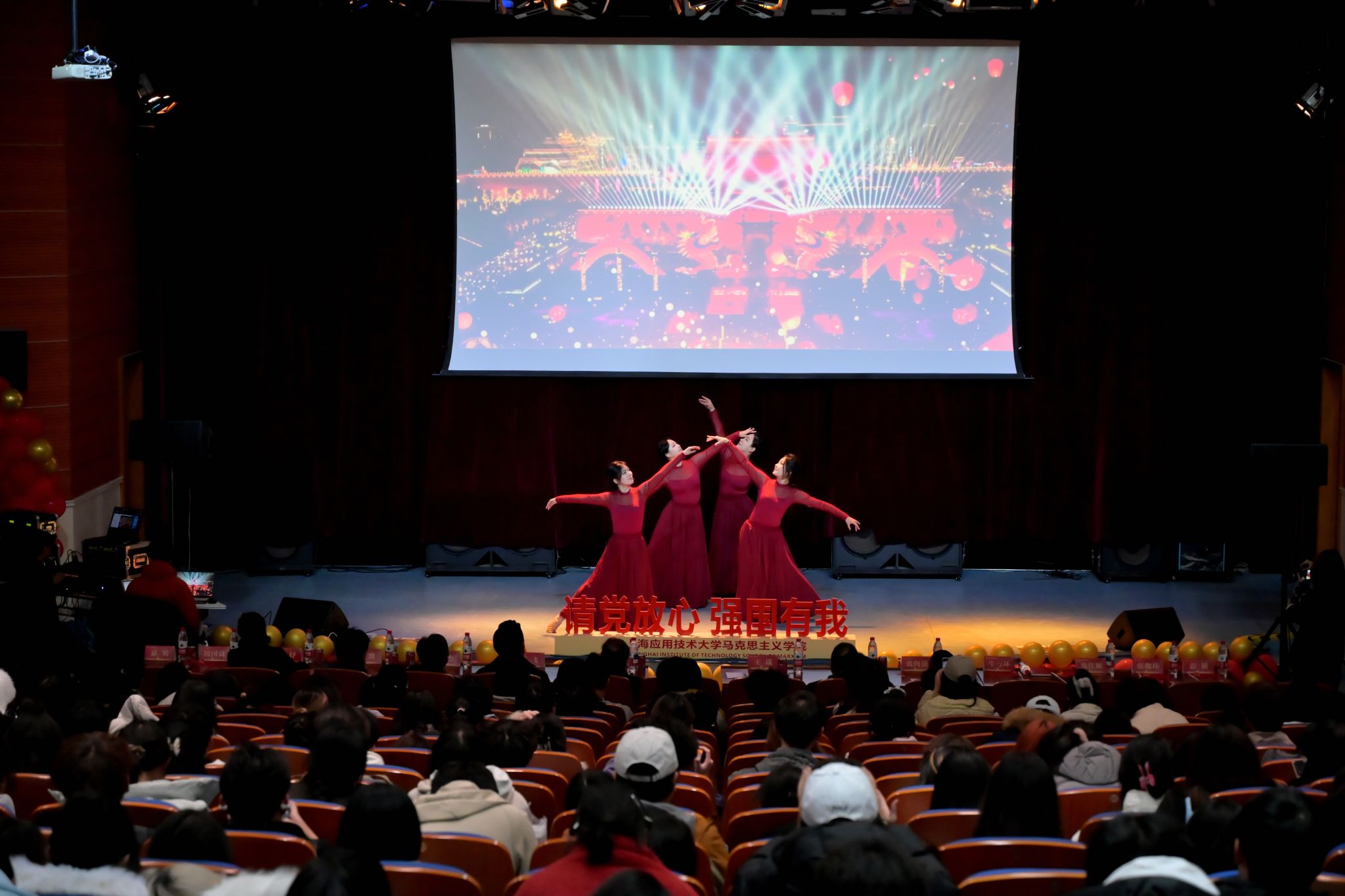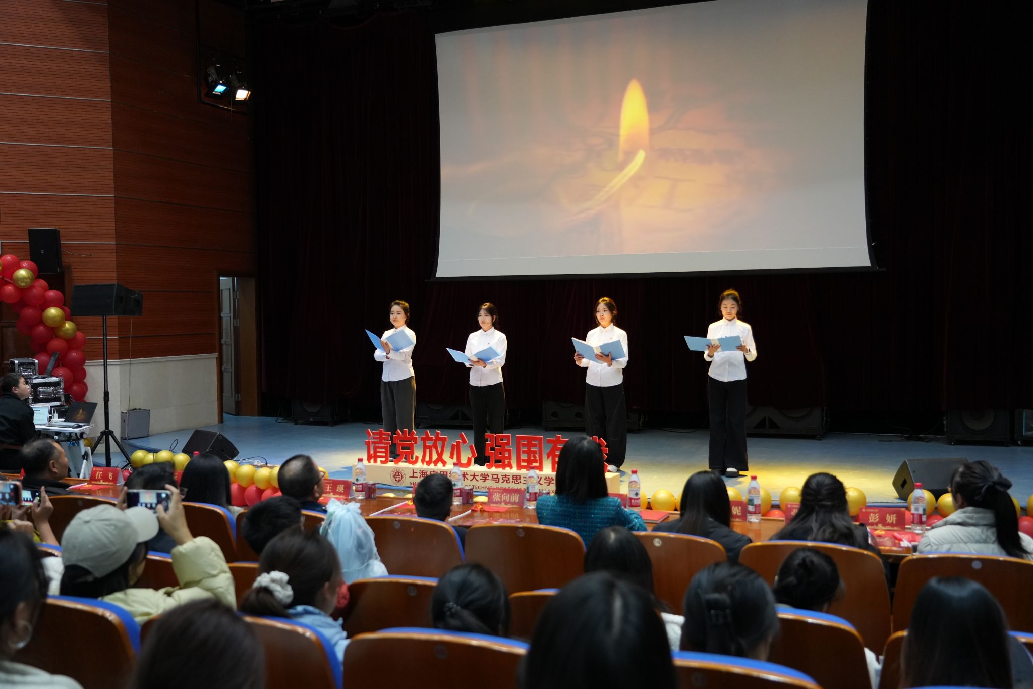 12月8日晚,“铭记历史,展望未来——纪念‘一二·九’运动”主题艺术党课举行,活动由马克思主义学院主办,马克思主义学院团委、研究生会、知行学社承办。校党委副书记、副校长王瑛,党委常委、宣传部部长杨明,空军驻奉某部政治委员吴木杨及其部队官兵,上海成才教育学院、上海开放大学附中成才教学点舞蹈学院任飞校长及其舞蹈团队,上海市群众文艺指导员、马克思主义学院兼职研究生实践导师周国良老师,马克思主义学院领导班子、全体研究生、教师代表与特邀嘉宾出席活动。