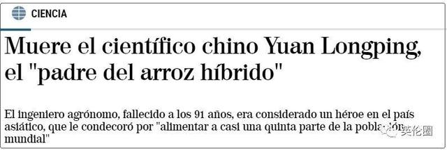 西班牙21世纪世界报:“杂交水稻之父”中国科学家袁隆平去世;