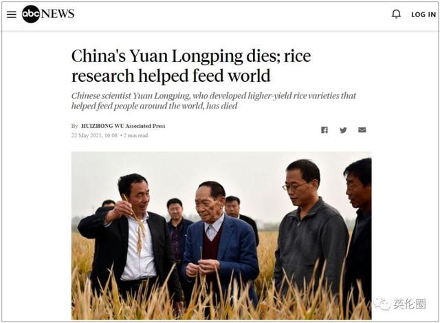 ABC新闻:中国的袁隆平逝世;大米研究帮助养活了世界
