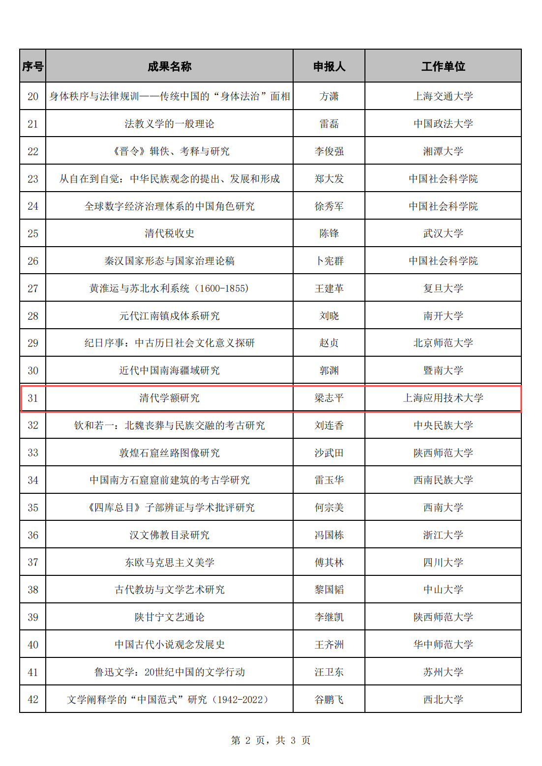 近日,全国哲学社会科学工作办公室公示了2024年度《国家哲学社会科学成果文库》入选名单,我校马克思主义学院梁志平教授的成果《清代学额研究》成功入选,这是我校科研成果首次入选该项项目,实现了学校人文社科研究的重大突破。
