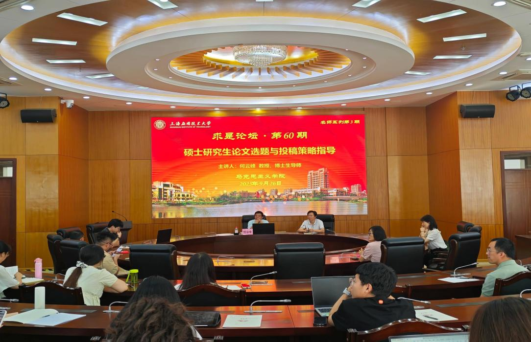为深化师生对论文选题与投稿的认识,9月26日下午,上海应用技术大学马克思主义学院在奉贤校区第六学科楼B410教室举办专题讲座。上海师范大学何云峰教授受邀,以“硕士研究生论文选题与投稿策略指导”为题主讲。马克思主义学院党总支书记邱杰、副书记牛亏环、学院师生共同参与。会议由副院长周贇主持。