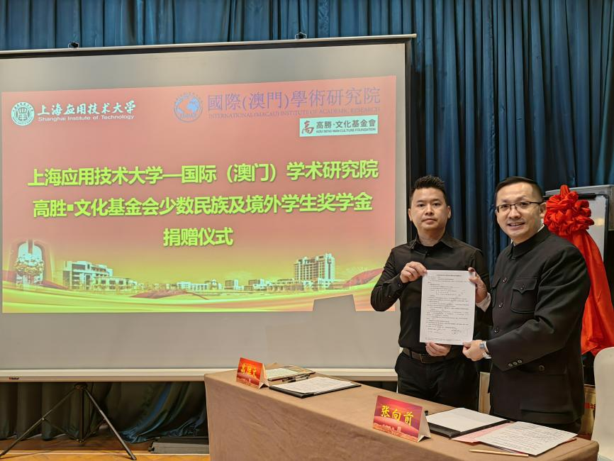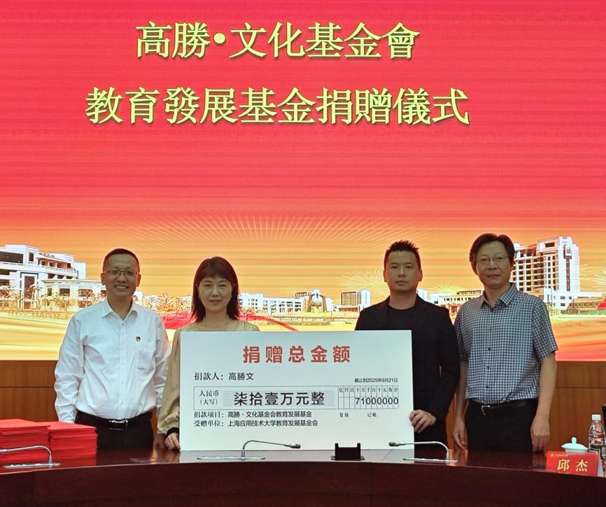 日前,适逢上海应用技术大学建校71周年,高胜・文化基金会创办人、国家外国专家、国际学术研究院院长、特聘教授、高胜文博士再次捐赠澳门币31万元教育发展基金予上海应用技术大学,至今累计向该校捐赠澳门币71万元,藉此捐资助学活动鼓励师生积极向上,助力国家教育事业发展,以实际行动践行爱国爱澳。