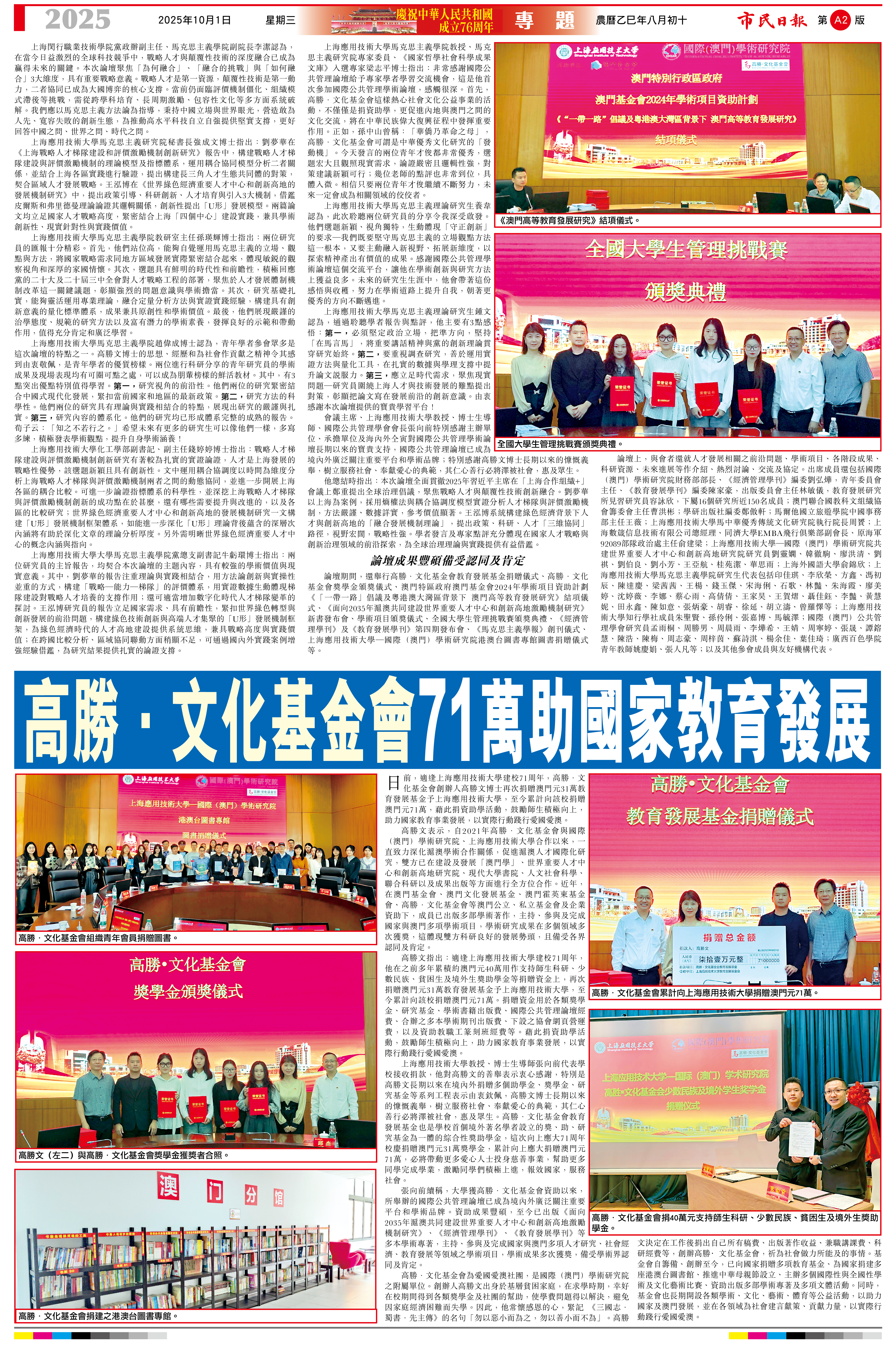 澳门《市民日报》《正报》《环球报》《环球新闻报》、中国新闻网等媒体报道会议活动及相关成果,其中《市民日报》2025年10月1日用两个整版作为庆祝中华人民共和国成立76周年专题报道。