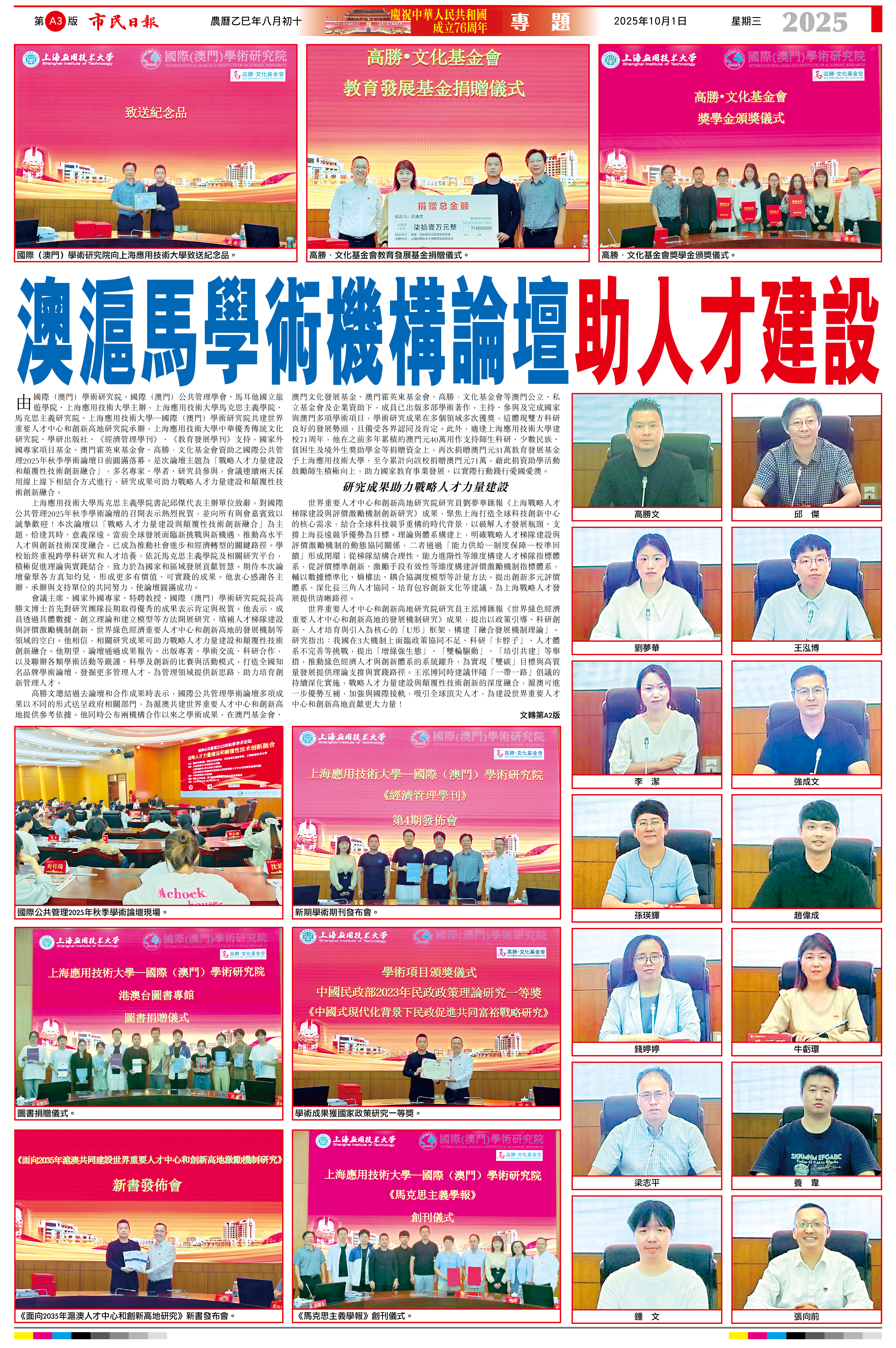 日前,由国际学术研究院、国际公共管理学会、马耳他国立旅游学院、上海应用技术大学主办,上海应用技术大学马克思主义学院、马克思主义研究院、上海应用技术大学—国际学术研究院共建世界重要人才中心和创新高地研究院承办,上海应用技术大学中华优秀传统文化研究院、学研出版社、《经济管理学刊》、《教育发展学刊》支持,国家外国专家项目基金、澳门霍英东基金会、高胜・文化基金会资助的国际公共管理2025秋季学术论坛圆满落幕。本次论坛主题为“战略人才力量建设和颠覆性技术创新融合”,境内外200多名专家、学者、研究员参与,会议连续两天采用线上线下相结合方式进行,研究成果助力新时代战略人才力量建设和颠覆性技术创新融合。
