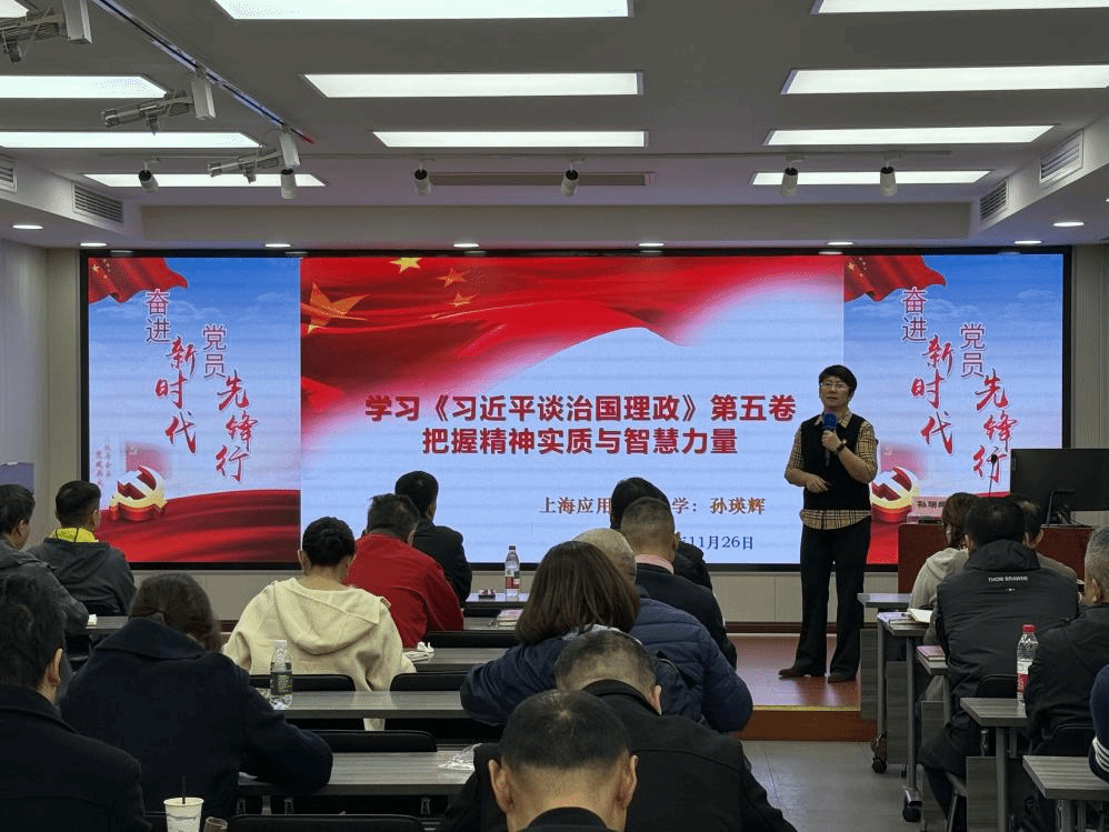 11月26日,上海应用技术大学马克思主义学院与上药党校联合开展联合备课交流活动,以理论共建推动高校思政课与企业党建深度融合。《习近平新时代中国特色社会主义思想概论》教研室主任孙瑛辉副教授受邀主讲,作了“学习《习近平谈治国理政》第五卷 把握精神实质与智慧力量”专题报告。