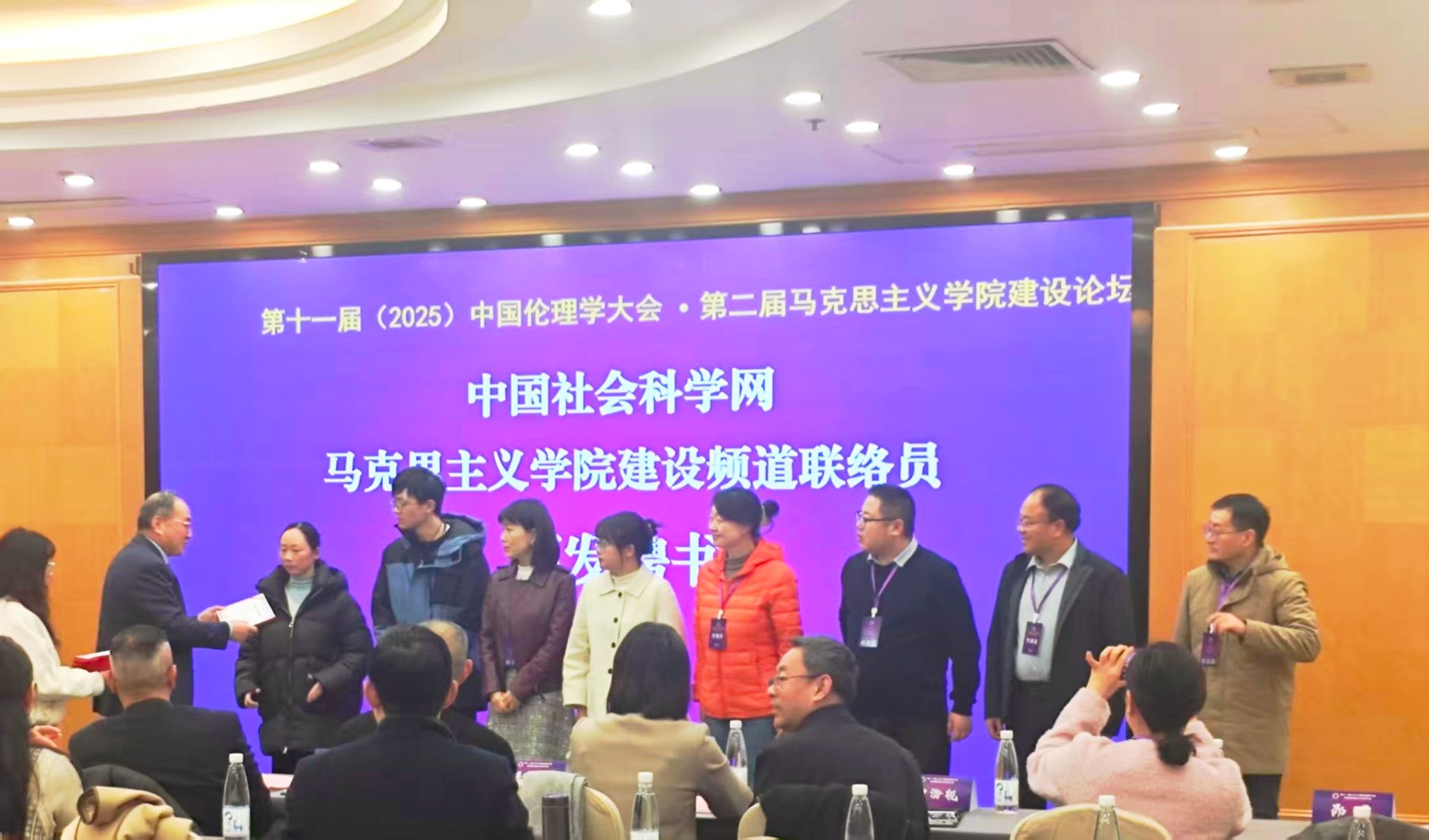 中国伦理学会副会长、首都师范大学教授王淑芹主持论坛她表示,马克思主义学院是筑牢青年理想信念、推进马克思主义中国化、时代化的重要阵地,论坛为全国马克思主义学院交流分享经验提供了有效平台。中国伦理学会执行秘书长王海滨介绍了与中国社会科学网合作策划马克思主义学院建设频道、服务马院建设需求的阶段成果与发展设想,并为与会我校教师牛亏环等10位全国高校马院联络员颁发了聘书。