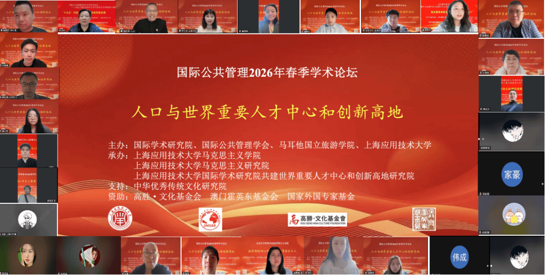 2026年3月28日至29日,一场以“人口与世界重要人才中心和创新高地”为主题,以“人口、数字政府、人才与创新”为核心议题的学术论坛圆满落幕。论坛适逢承办单位上海应用技术大学72周年校庆,与会各界嘉宾首先对上海应用技术大学在各领域发展取得的积极成就表示热烈祝贺,衷心祝愿上海应用技术大学在“十五五”期间再谱华章、再创辉煌! 会议连续两天采用线上线下相结合方式进行,来自境内外高校与研究机构的专家学者、研究员与参与者等,通过多场高质量学术汇报与深度点评,系统探讨了人口与世界重要人才中心和创新高地发展之前沿问题,为相关领域提供了理论与实践之双重参考。