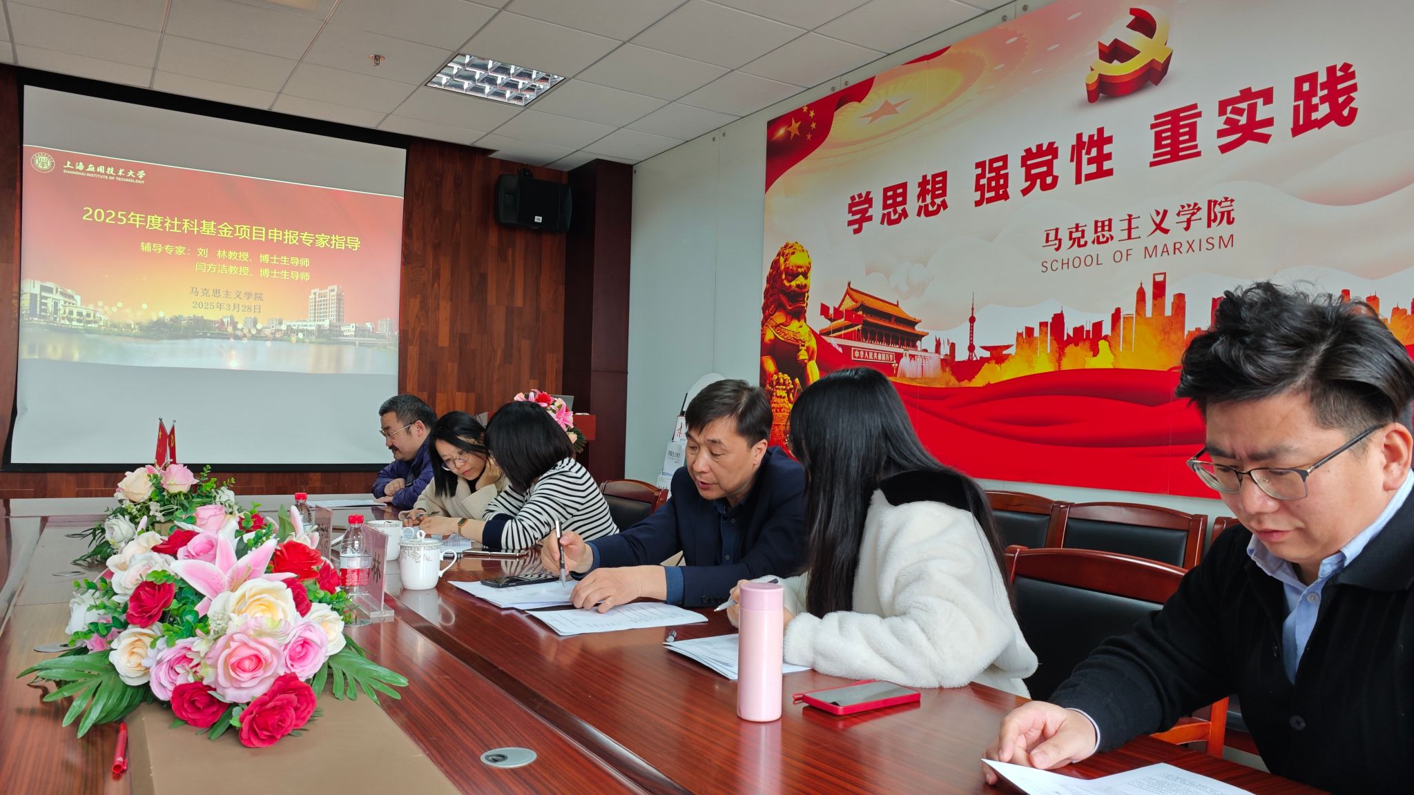 为切实提升教师国家社科基金项目的申报质量,马克思主义学院于3月28日在奉贤校区A419会议室举办了2025年度国家社科基金项目申报辅导会。特邀上海师范大学刘林教授、华东师范大学闫方洁教授来院开展一对一辅导,吸引了学院众多教师踊跃请教,现场学术氛围浓厚。学院领导班子出席。辅导会由学院党支部副书记牛亏环主持。