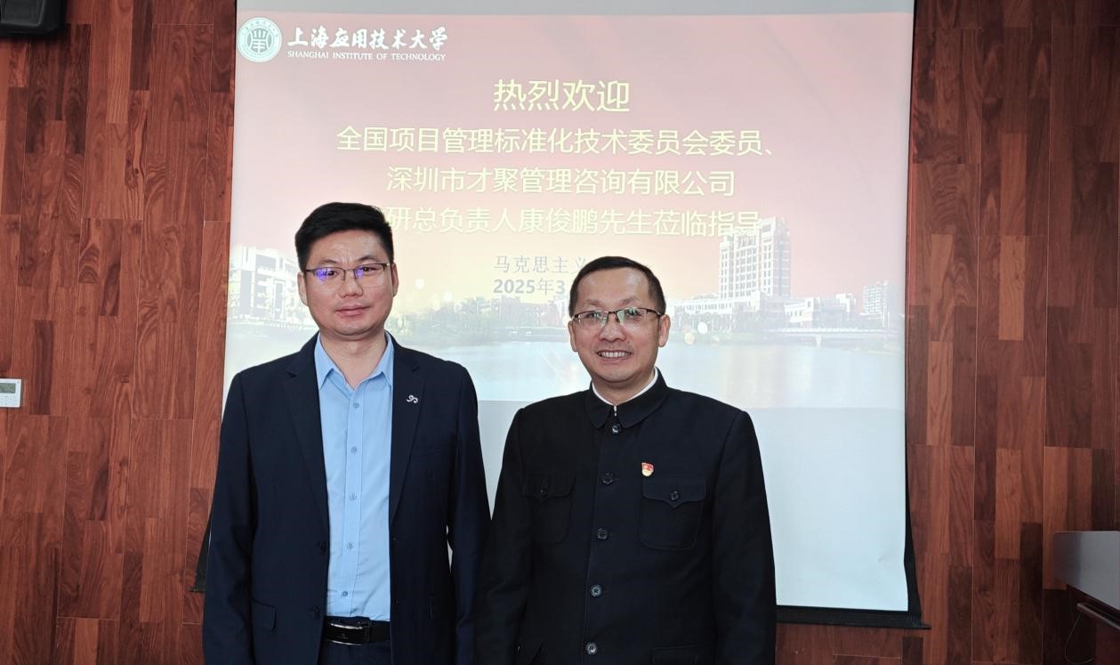 为深化产教融合,共筑英才成长新生态,目前,全国项目管理标准化技术委员会委员、深圳市才聚管理咨询有限公司教研总负责人康俊鹏先生率队访问上海应用技术大学马克思主义学院,马克思主义学院院长张向前热情接待来宾,学生代表孟雨桐等参加相关活动。