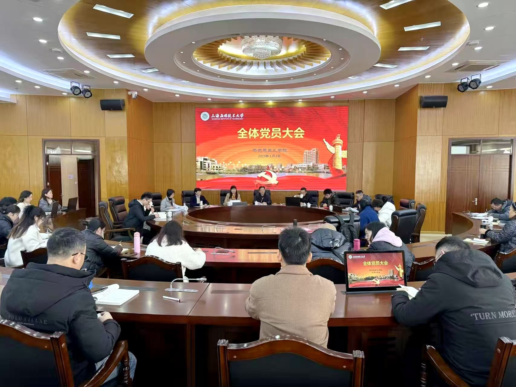 1月8日,中共上海应用技术大学马克思主义学院党总支顺利召开全体党员大会,学院全体教师党员齐聚一堂,共商学院发展大计。