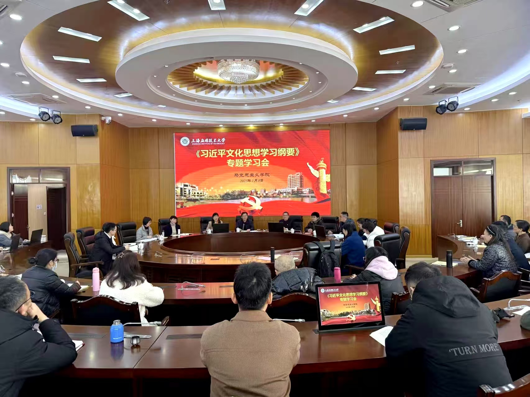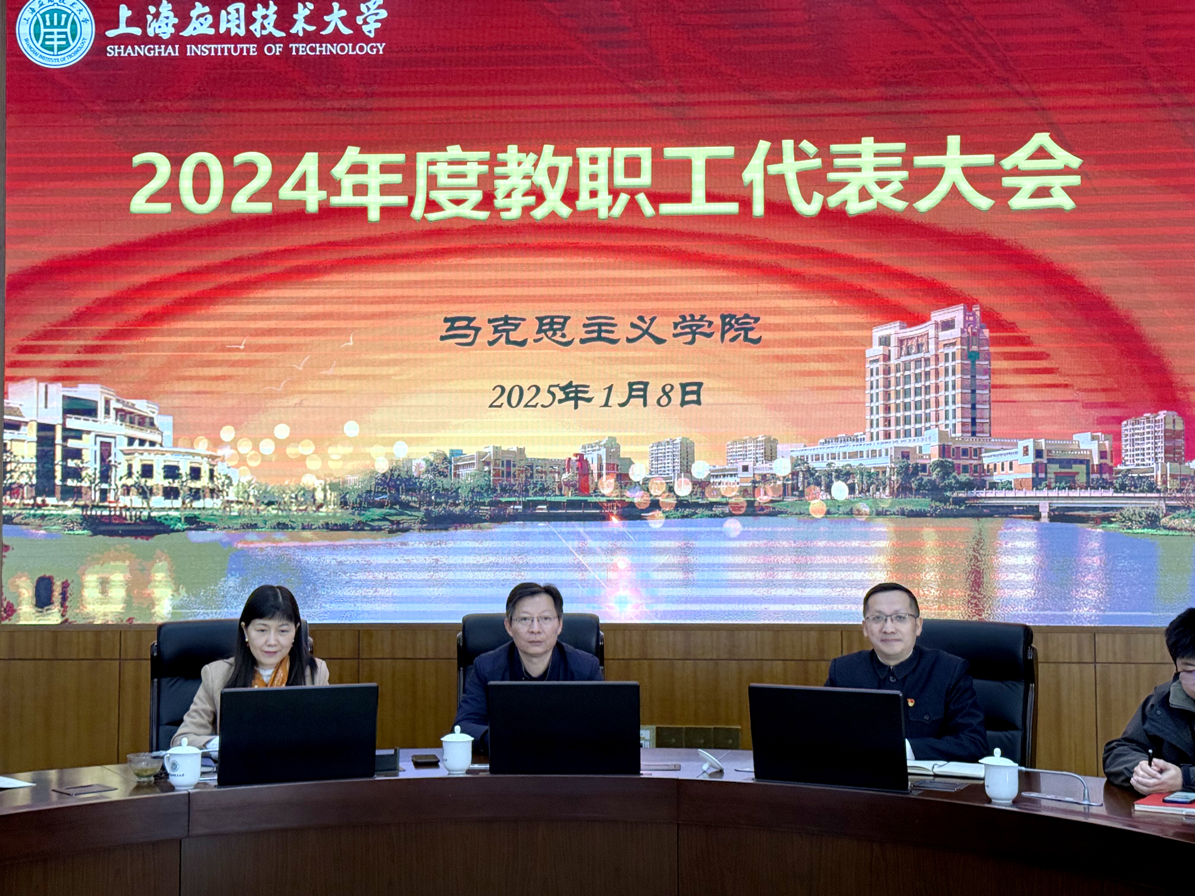 为进一步加强学院建设与发展,深入学习习近平文化思想,近日,上海应用技术大学马克思主义学院在第六学科楼B410举行了教职工代表大会暨《习近平文化思想学习纲要》专题学习会。学院全体教职工齐聚一堂,同绘学院奋进蓝图,共学理论思想精髓。