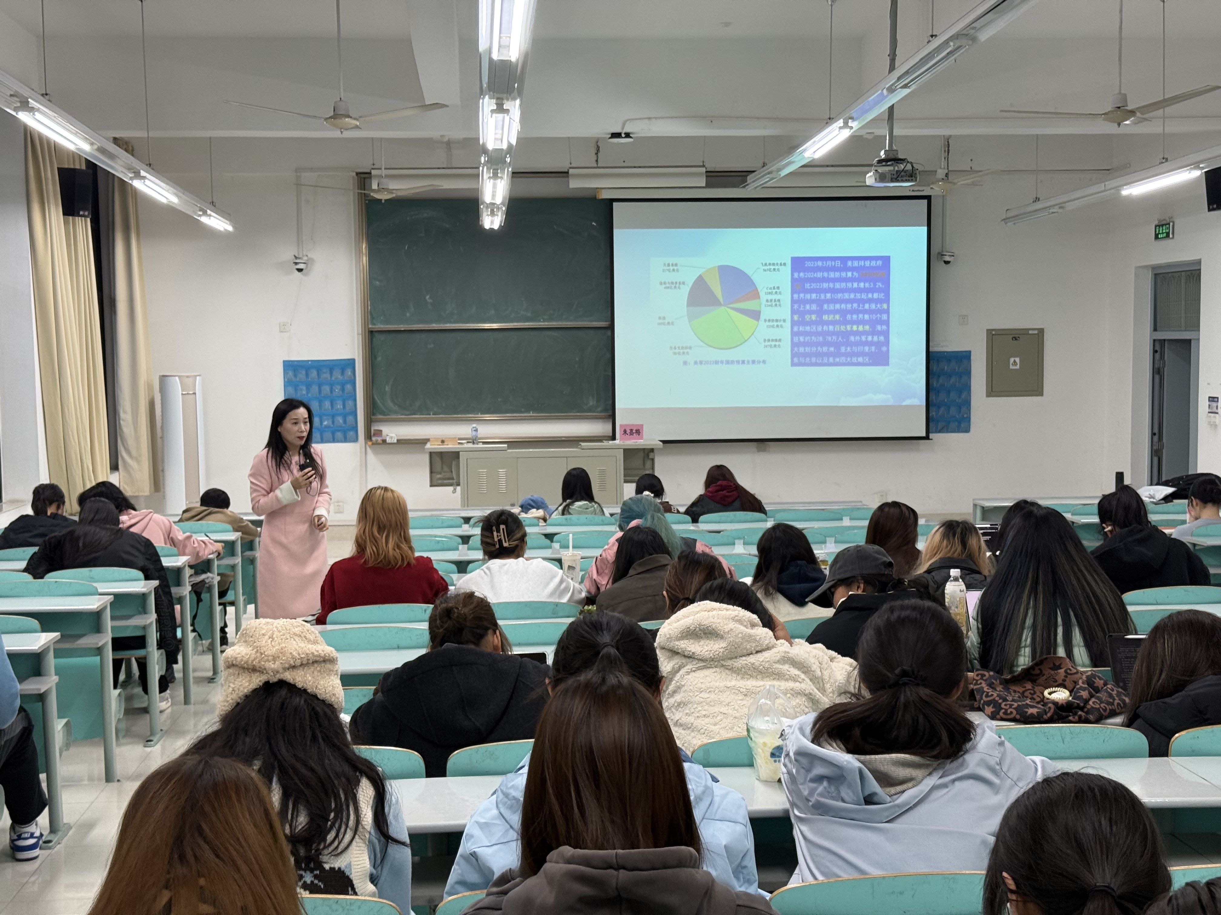 朱嘉梅主要围绕总体国家安全观的核心要义和如何开创总体国家安全观新局面等内容展开讲述。她认为,习近平总书记关于总体国家安全观的相关论述,不仅是我国积极主动适应百年变局加速演进局势的战略选择,同时也是稳定社会安全的护航之需,更是强国建设和民族复兴的题中之义。朱老师号召同学们将个人规划积极主动融入国家发展大局中,在国家全面推进中国式现代化和实现民族复兴的伟大征程上能够拥有“一技之长”的能力和占据“一席之地”的价值。