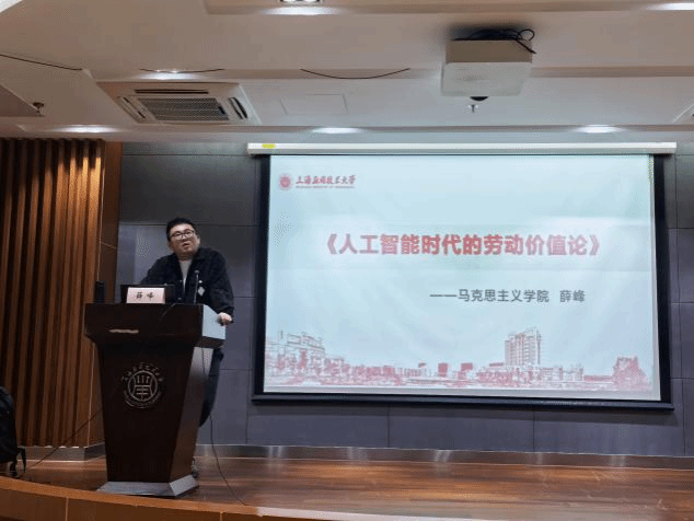日前,马克思主义学院在奉贤校区举行知行讲坛,特邀学院青年博士、硕士生导师薛峰主讲:《人工智能时代的劳动价值论》。