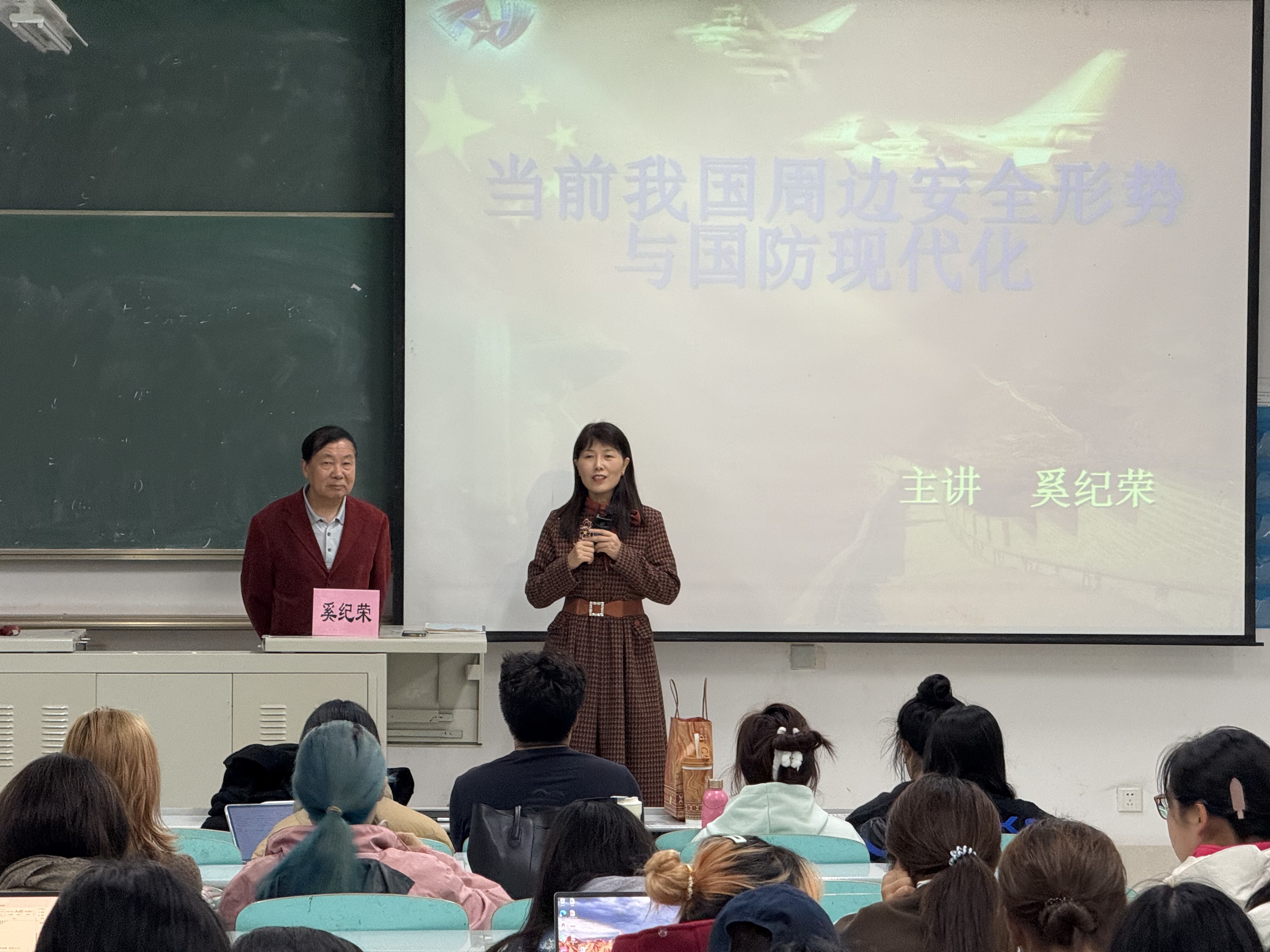 近日,马克思主义学院邀请了上海国防战略研究所教授、博士生导师,上海国防教育学院副院长,上海国防教育讲师团教授,上海东方讲坛“最受欢迎的讲师”奚纪荣教授在一教C303为同学们讲授“国家安全教育”系列讲座第二讲:《当前我国周边安全形势与国防现代化》。