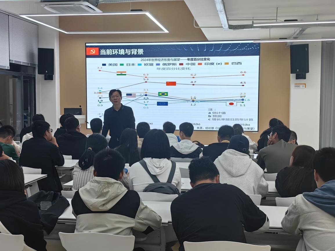 10月11日晚,上海应用技术大学萱园-悦萱路演厅内灯光璀璨,一场别开生面的知识盛宴在这里拉开帷幕。本次讲坛由上海应用技术大学马克思主义学院知行学社精心策划,旨在庆祝中华人民共和国成立75周年,深入学习宣传贯彻党的二十届三中全会精神,马克思主义学院直属党支部书记邱杰副教授主讲。众多学子怀揣着对知识的渴望与对国家的热爱,齐聚一堂,共同参与这场意义非凡的讲坛。