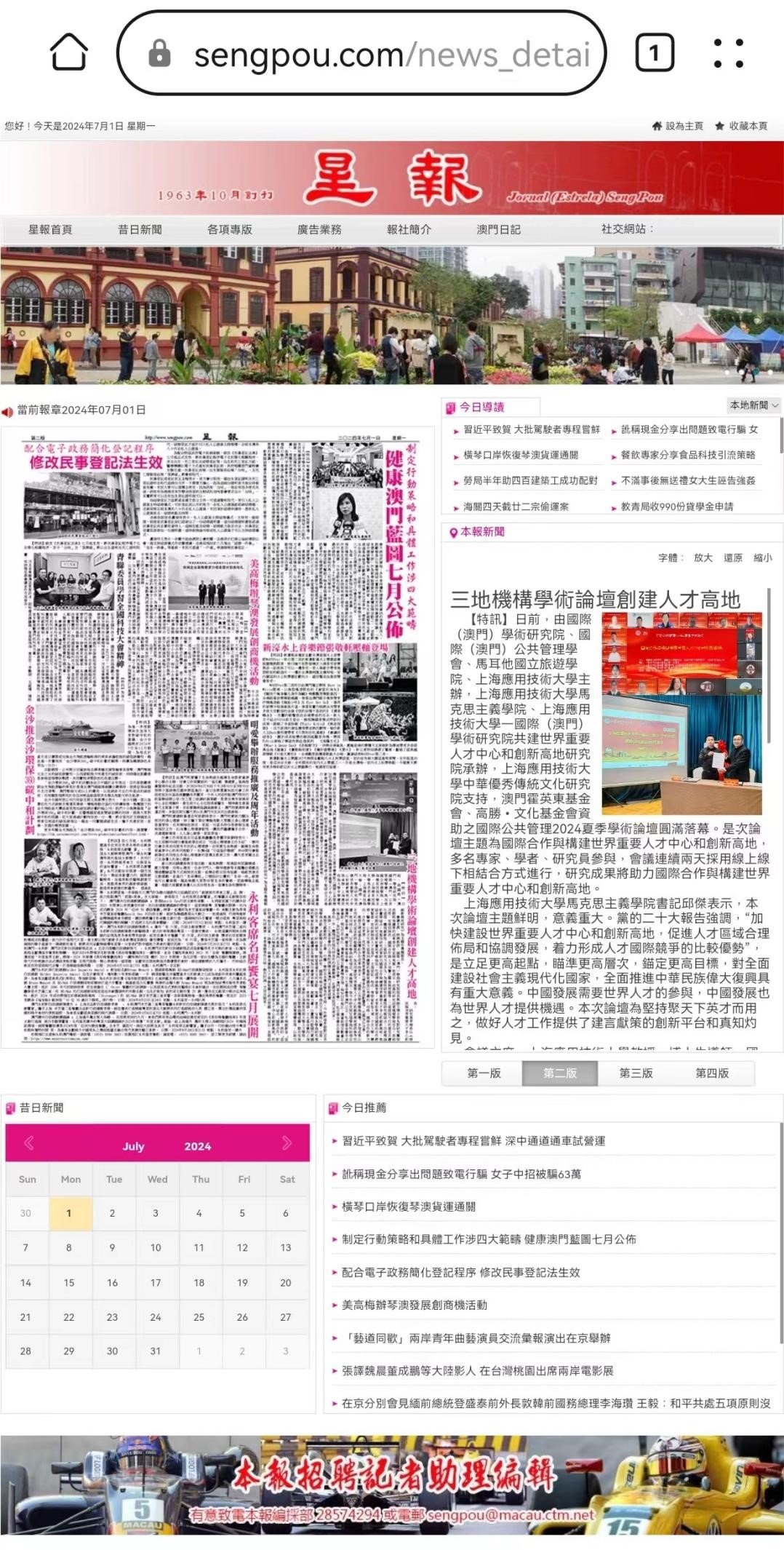 《市民日报》《星报》《澳门人报》等媒体对本次论坛进行广泛报道。