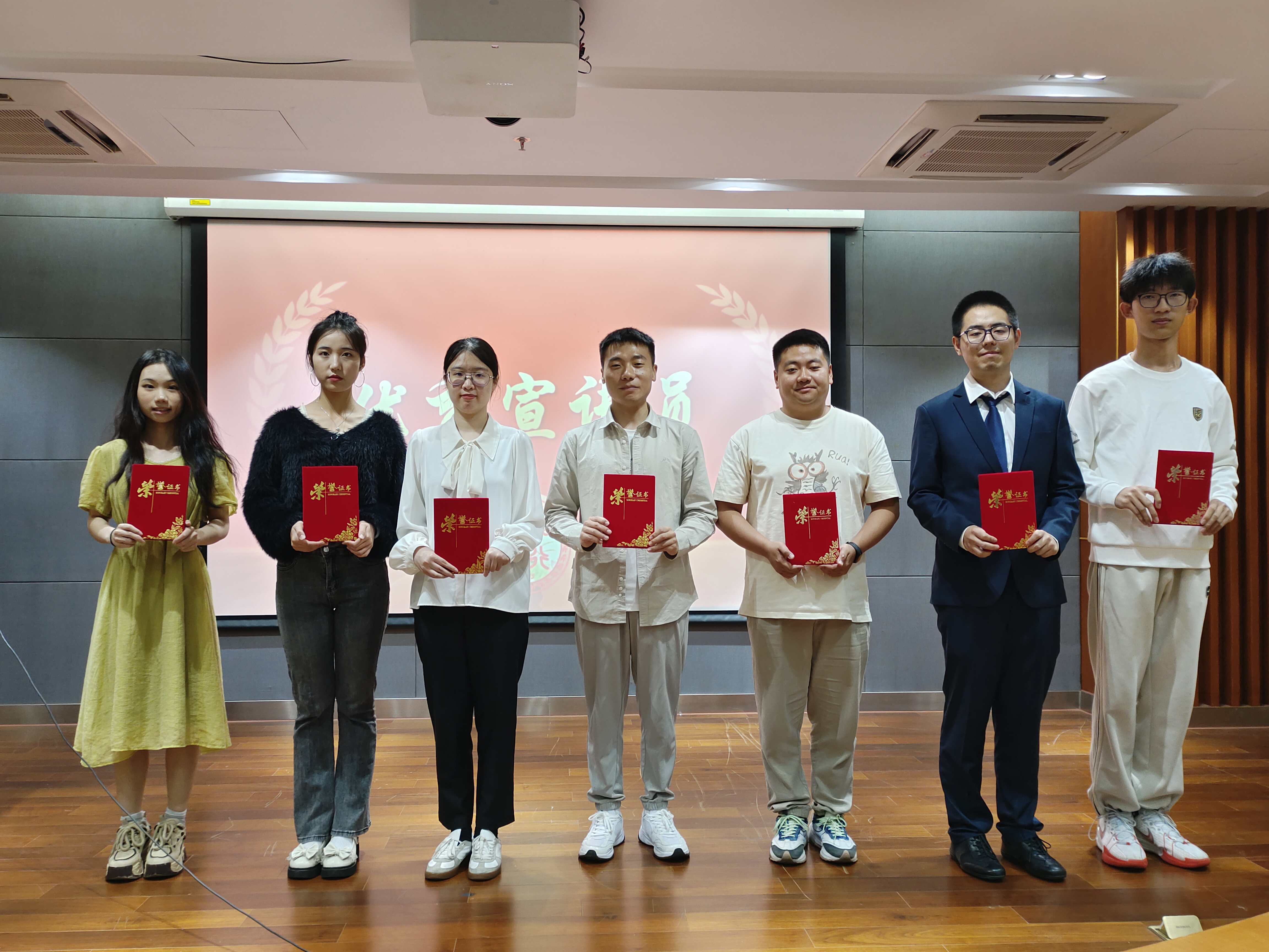 接着,大会进入颁奖环节。本次颁奖主要针对优秀社长、优秀部长、优秀志愿者、优秀部门和优秀宣讲员等进行表彰。颁奖结束后,社长刘嘉豪发表了获奖感言。他感慨万分,表示能够在社团中担任干部职务是一次宝贵的锻炼机会,感谢大家的支持与信任。同时,他还表示将继续努力,为社团的繁荣发展贡献力量。优秀宣讲员张博炜、李慧渊及优秀部长南泽沛也分别发表了获奖感言,他们纷纷表示,知行学社为他们提供了挑战自我、展示自我、实现自我的舞台,正是社团指导教师及社员的的大力支持,让他们获取不断成长的动能。