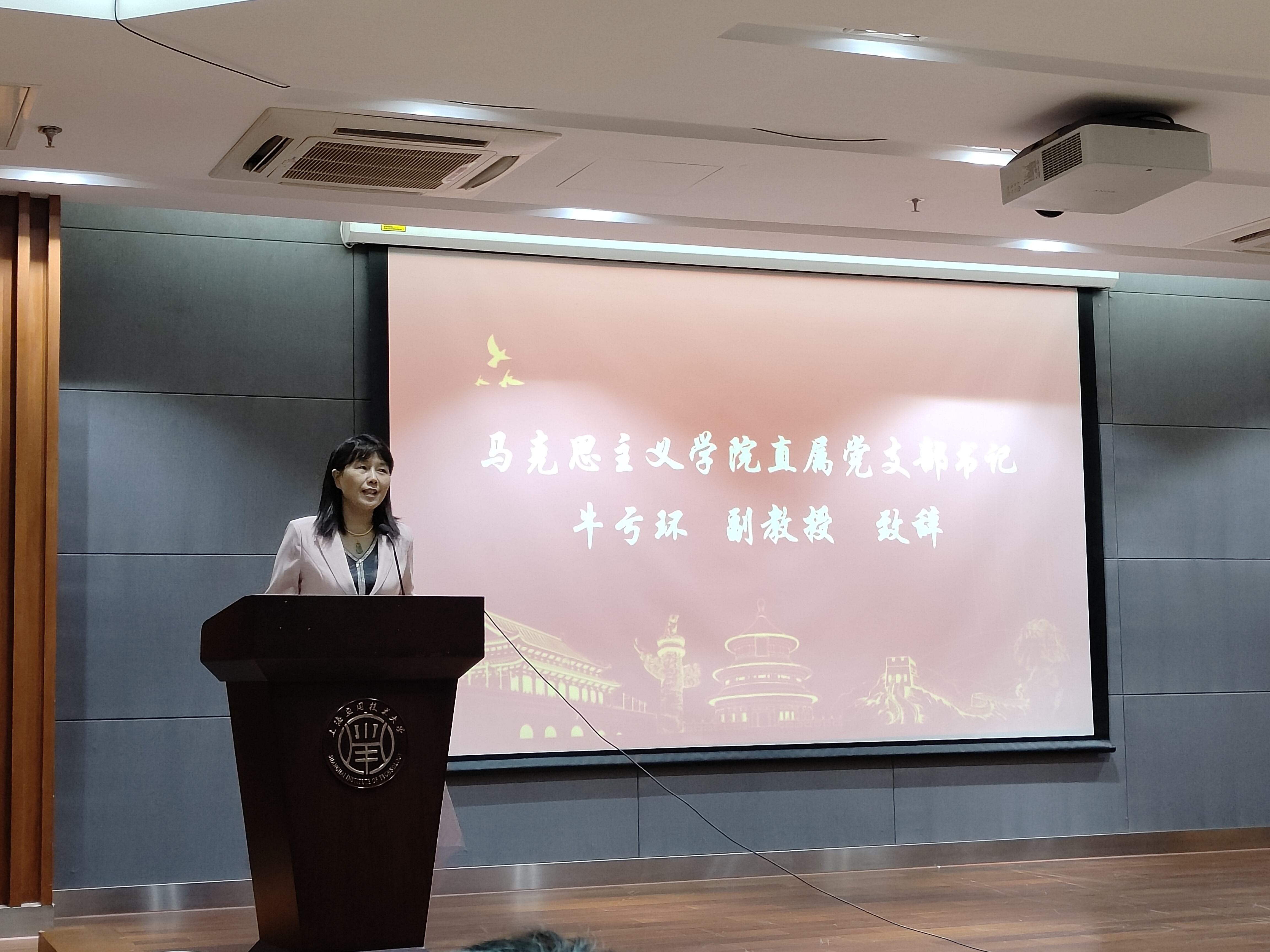 最后,马克思主义学院直属党支部副书记、知行学社指导教师牛亏环总结发言。她首先对获奖的同学们表示祝贺,接着对知行学社在过去一年所取得的成就表示肯定,对大家一年来的投入和付出表示感谢。最后,牛亏环对社团青年进行寄语。她指出,星光不负赶路人、时光不负有心人,知行学社党史理论宣讲团在清华大学参加全国大学生宣讲比赛获得特等奖的成果鼓舞人心、振奋斗志,为社团青年成长为“有理想”的时代新人提供了经验参考,只要敢想敢为、善做善为,就会离成功越来越近;今年以来,社团成功举办了音乐党课、参与市示范党课展示、入选上海市教卫工作党委系统社会主义核心价值观建设典型案例、荣获上海市五四青年奖章集体、校忠诠-尔纯思想政治教育奖等荣誉,较好地展示了社团师生“敢担当、能吃苦”的有为青年风采;所有成绩的取得离不开社团全部师生的辛勤付出,为以后再接再厉、持续“肯奋斗”提供方向引领,希望知行学社能够继续发展壮大,为学校高质量发展、强国建设民族复兴做出更多贡献。