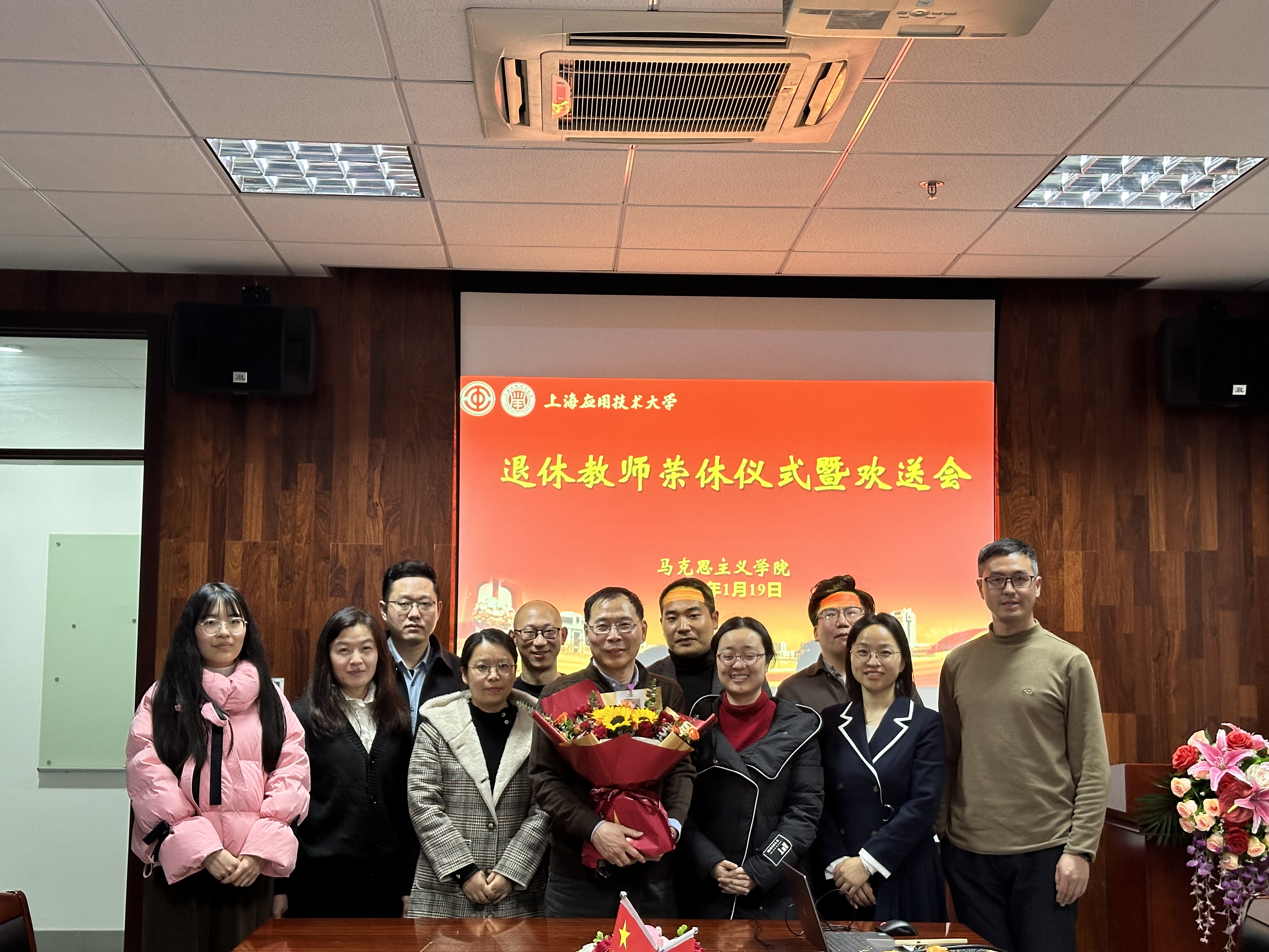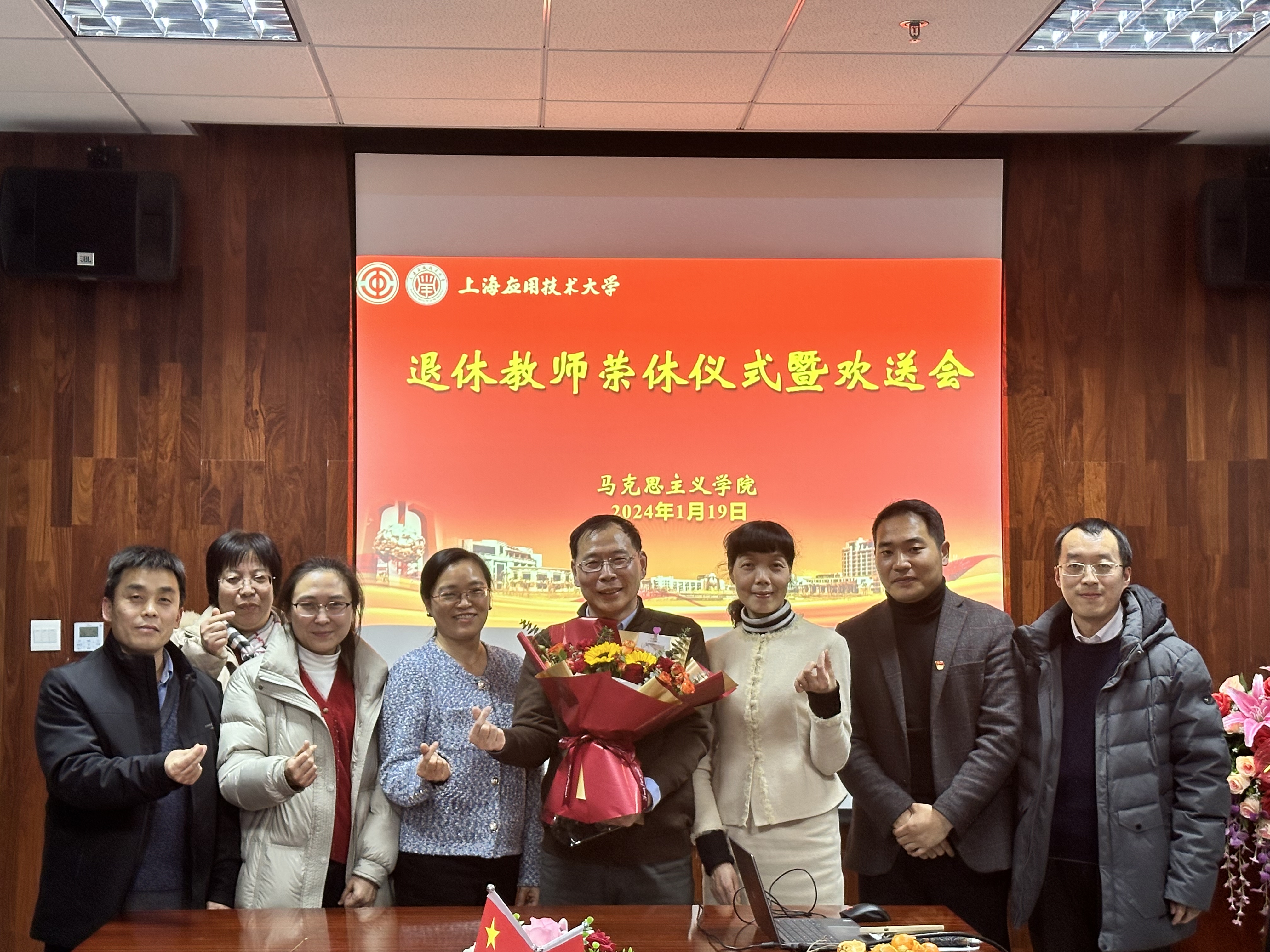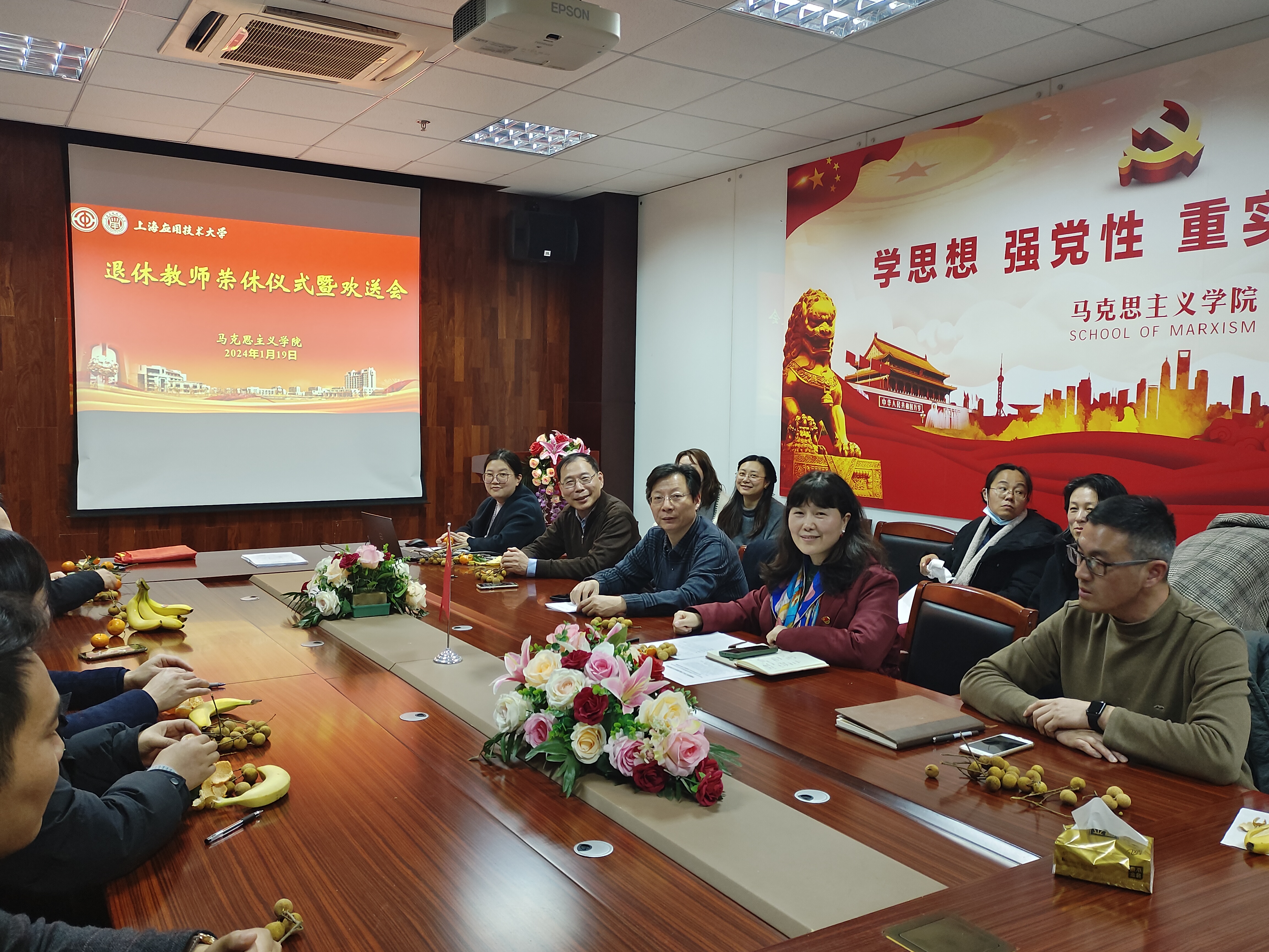 2024年1月19日,六科A419会议室里其乐融融,马克思主义学院教师们齐聚一堂,共同为退休教师王雪敏举行荣休仪式暨欢送会。学院直属党支部副书记、分工会主席牛亏环主持,马克思主义学院全体教师参加。