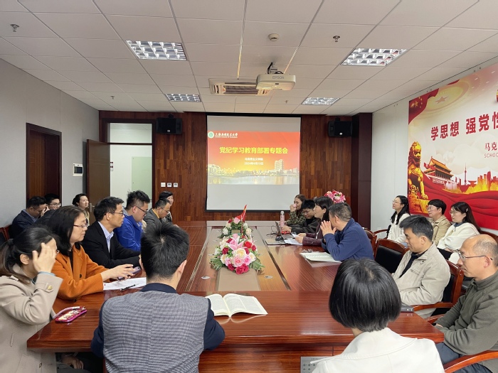 首先,牛亏环在学习教育专题会上传达了学校党纪学习教育方案的精神,对学院组织开展党纪学习教育工作进行部署,强调学院组织党员教师认真学习《中国共产党纪律处分条例》(以下简称《条例》)的重要性和必要性,是学习贯彻习近平新时代中国特色社会主义思想、推进落实习近平总书记考察上海重要讲话精神的有效路径,是思政课教师担负“为党育人、为国育才”重要使命的实践路径。