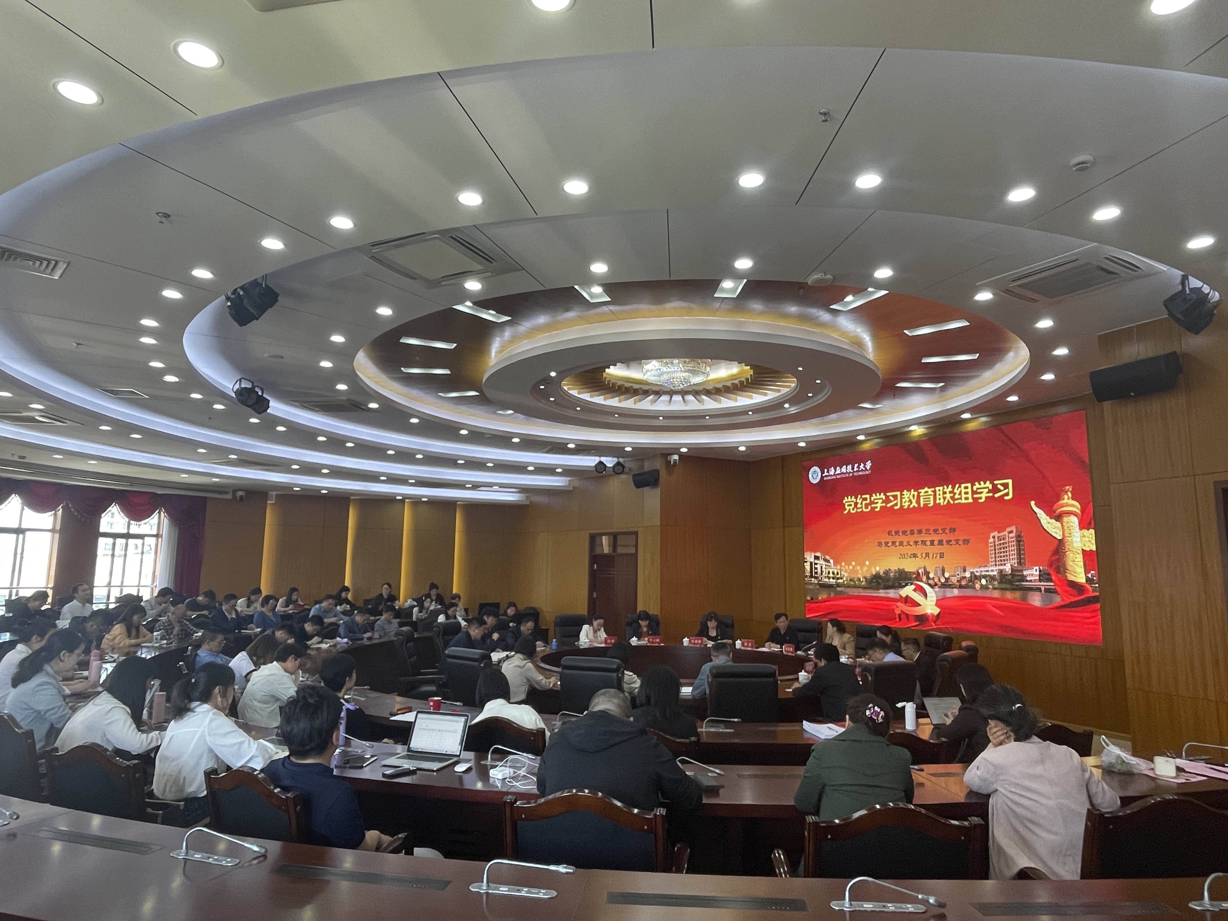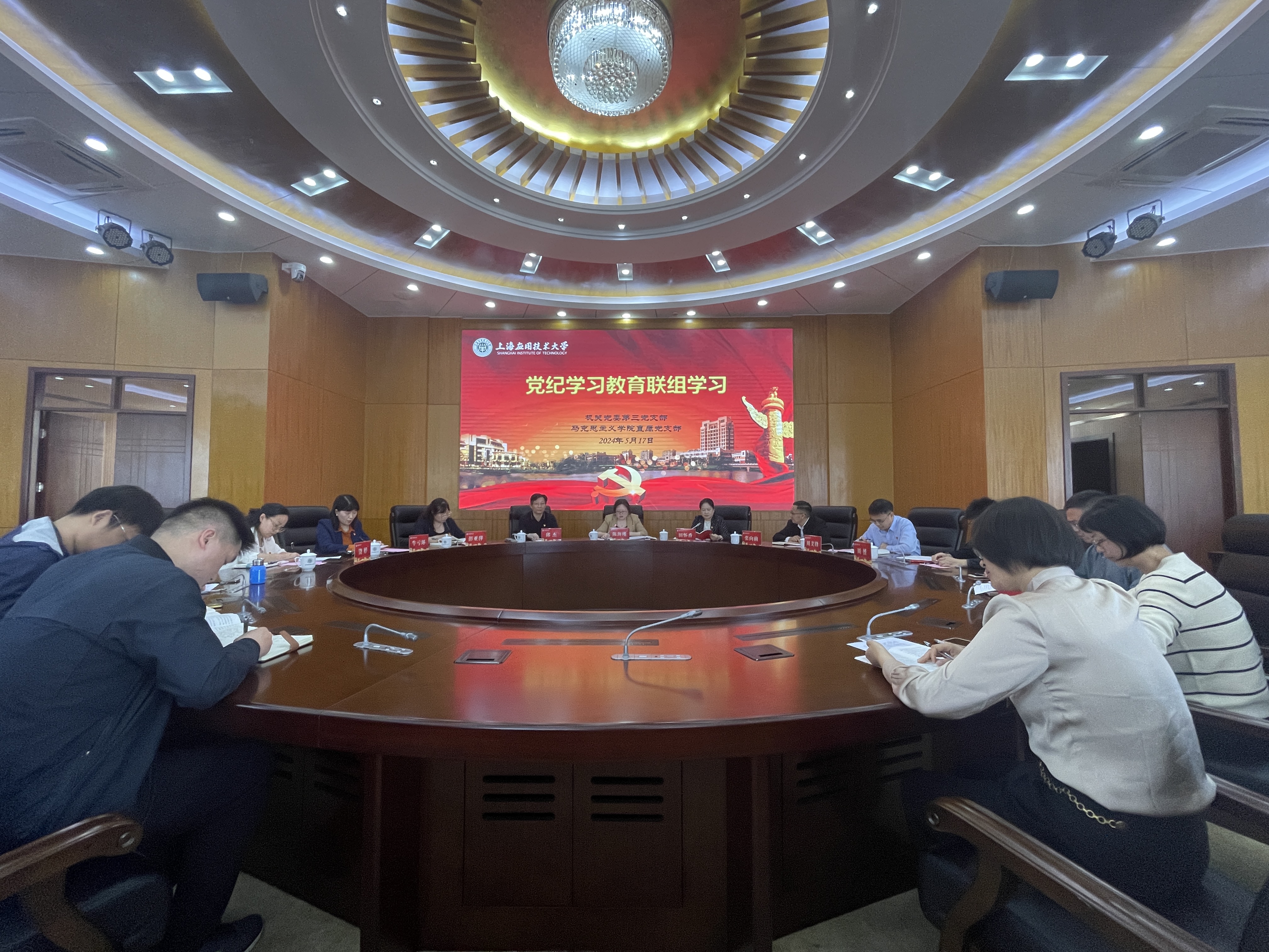 为扎实推进党纪学习教育,5月17日,机关第三党支部和马克思主义学院直属党支部开展联组学习。校党委副书记陈海瑾出席会议并讲话,党委教师工作部部长、人事处处长、机关第三党支部书记田怀香主持会议。