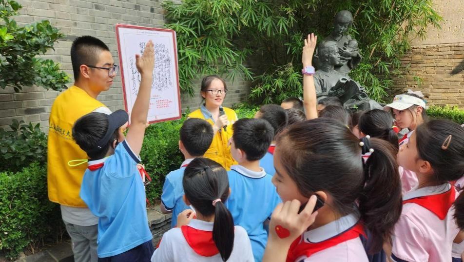 8月6日,上海应用技术大学马克思主义学院与上海师范专科学校附属小学联合组织了一场以“大应携小鹰,话百年初心”为主题的大中小思政一体化活动。上海应用技术大学的大学生们带领20多名小学生,走访了寰球中国学生会遗址、《新青年》编辑部、中共“一大”会址、1924年毛泽东故居(甲秀里)等沪上有关毛泽东足迹的红色旧址。