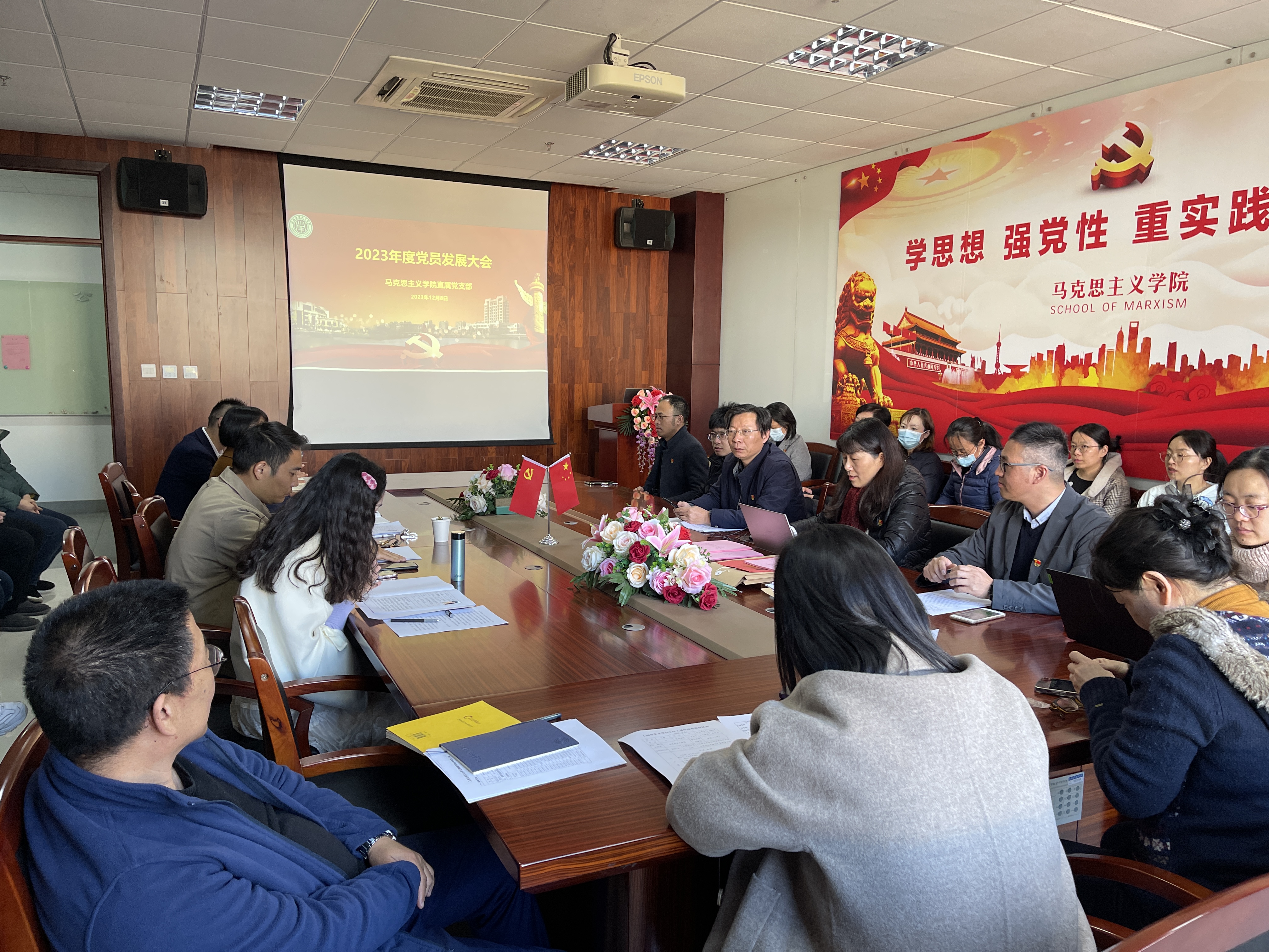 为深入学习贯彻习近平新时代中国特色社会主义思想和党的二十大精神,讨论和表决接收预备党员,12月8日下午,马克思主义学院直属党支部发展大会在第六学科楼A419室举行。会议对吸收李宏伟、胡文静、李安琪等3位同志为中共预备党员进行了审查、表决和决议。马克思主义学院常务副院长邱杰主持会议,马克思主义学院全体党员教师参加会议。