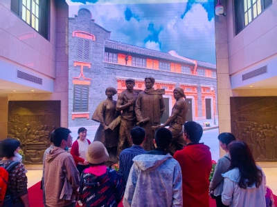 马克思主义学院知行学社理论宣讲团葛梦娜说,沉浸式实践体验令人印象非常深刻,在进入纪念馆内的第一眼,便看到了工人、农民、妇女、青年的人物雕像,象征着中国革命中伟大而坚毅的先进群众,在民主革命纲领的指引下不断前行。牛亏环老师为大家讲解了雕像蕴含的精神内核和承载的红色精神,中共二大相关党史资料的来源过程、保存赓续,革命人物的红色事迹,毗邻平民女校纪念馆背后的意义等,启发了大家对中共二大的革命精神开展热烈交流。
