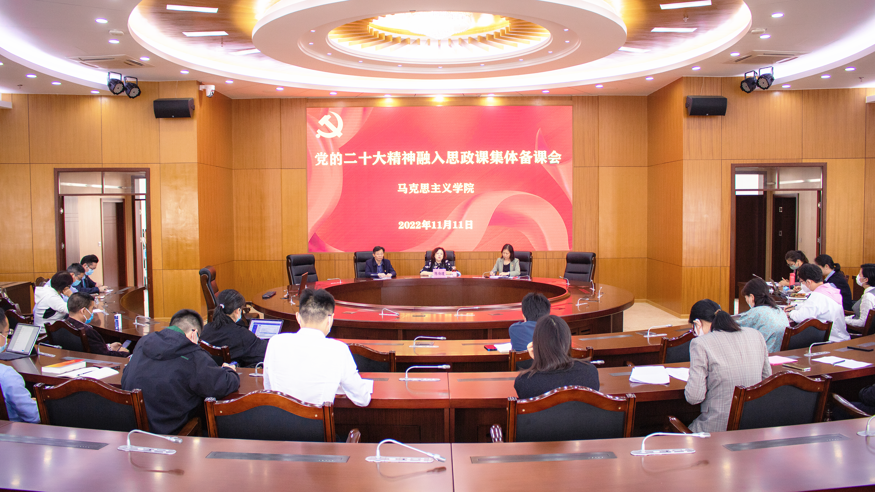 为进一步深入学习宣传贯彻党的二十大精神,切实推动党的二十大精神进教材、进课堂、进头脑, 11月11日,马克思主义学院召开“党的二十大精神进思政课”集体备课会。校党委书记副书记陈海瑾出席会议,学院直属党支部书记杨燕华主持,学院全体教师参加。