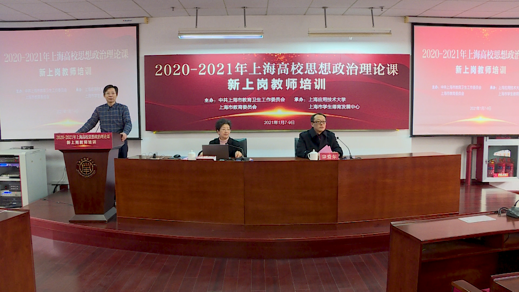 1月7日-9日,由中共上海市教育卫生工作委员会、上海市教育委员会主办,上海市学生德育发展中心、我校承办的2020-2021年上海高校思想政治理论课新上岗教师培训班在徐汇校区举办。校党委副书记宋敏娟致欢迎辞,上海市教科院德育研究院书记、副院长宗爱东致辞并作开班动员。开班仪式由马克思主义学院常务副院长邱杰主持。