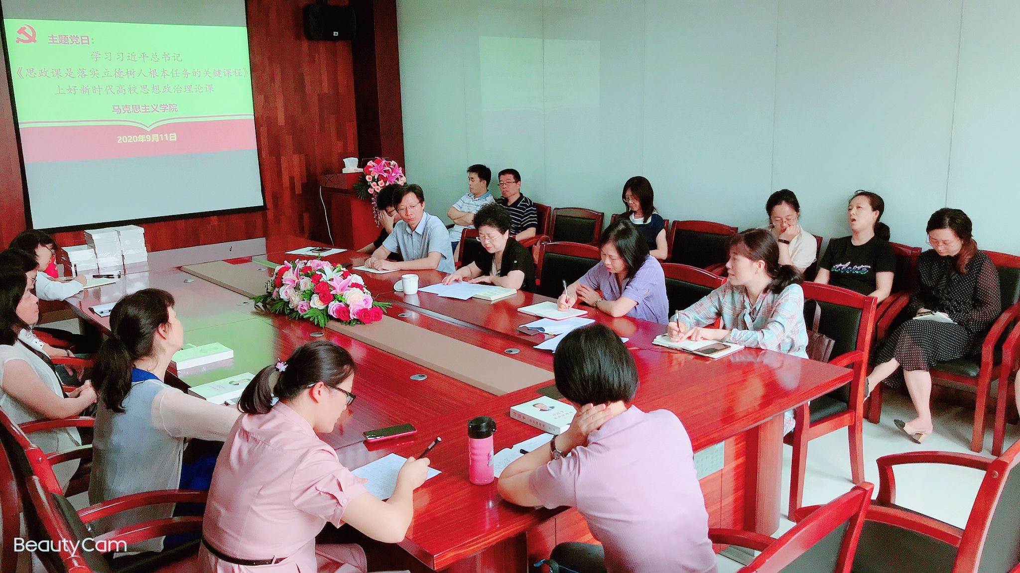 为深入学习贯彻习近平总书记发表在2020年第17期《求是》杂志上的重要文章,进一步统一思想、凝聚共识,9月11日,马克思主义学院举行“学习习近平总书记《思政课是落实立德树人根本任务的关键课程》,上好新时代思想政治理论课”主题党日活动。学校党委副书记宋敏娟教授、马克思主义学院党员教师参加会议。主题党日由副书记杨燕华(主持工作)主持。