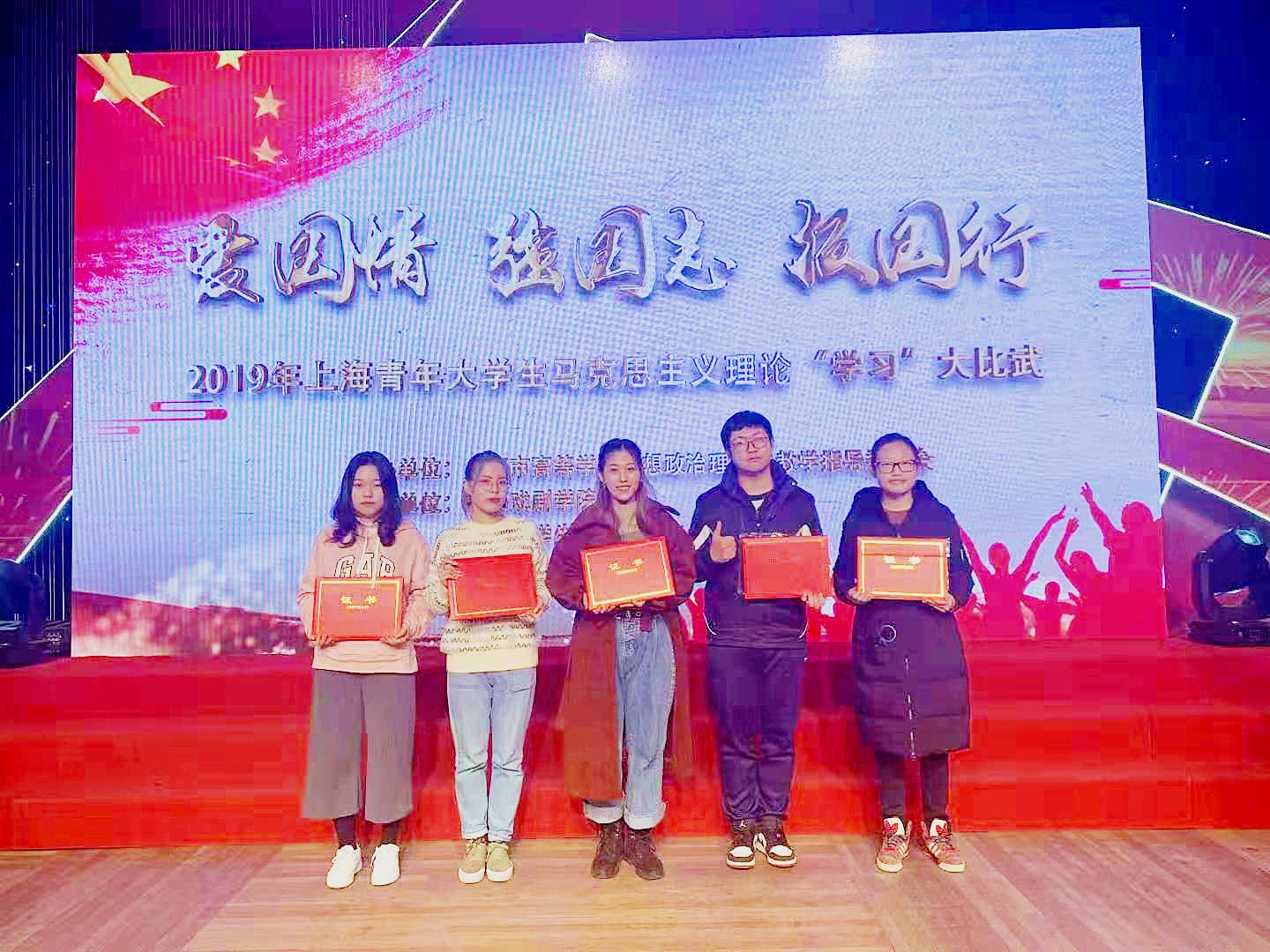 会上,由我校马克思主义学院教师马光霞指导、李慧渊等同学主讲的大学生讲思政课作品《勇担时代使命,让青春在奋斗中绽放光彩》荣获“砥砺前行七十载·奋斗成就中国梦”——上海高校学生讲思政课公开课活动二等奖;我校马克思主义学院教师颜睿指导、陈琳等同学创作的微电影作品《你好,朋友》和王佳辰等同学创作的微电影作品《最后一步》荣获“我心中的思政课”——上海高校大学生微电影展示二等奖;我校艺术设计学院刘海蛟老师指导、王欣悦同学创作的作品《峥嵘岁月》荣获上海市大学生思政艺术作品展示活动二等奖;由我校艺术设计学院陈艺方老师指导、张阳同学创作的作品《城市的发展:上海新高度》荣获三等奖。
