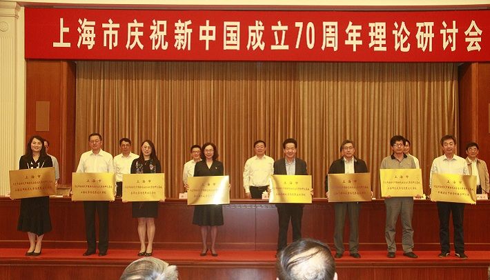 为深入学习贯彻习近平总书记在庆祝新中国成立70周年大会上的重要讲话精神,10月9日下午,上海市庆祝新中国成立70周年理论研讨会隆重举行。会上,市委常委、市委宣传部部长周慧琳等对上海市习近平新时代中国特色社会主义思想研究中心第二批研究基地进行了授牌。我校马克思主义学院院长李国娟参加本次会议,并接受了由市委宣传部、市委党校等多部门共同认定并颁发的授牌。