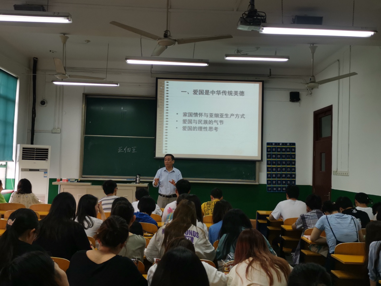 5月27日,上海师范大学马克思主义学院周中之教授应邀走进我校《毛泽东思想和中国特色社会主义理论体系概论》课堂,为广大学生上了一堂精彩纷呈的思政课,来自全校的100余名学生聆听了这堂课。