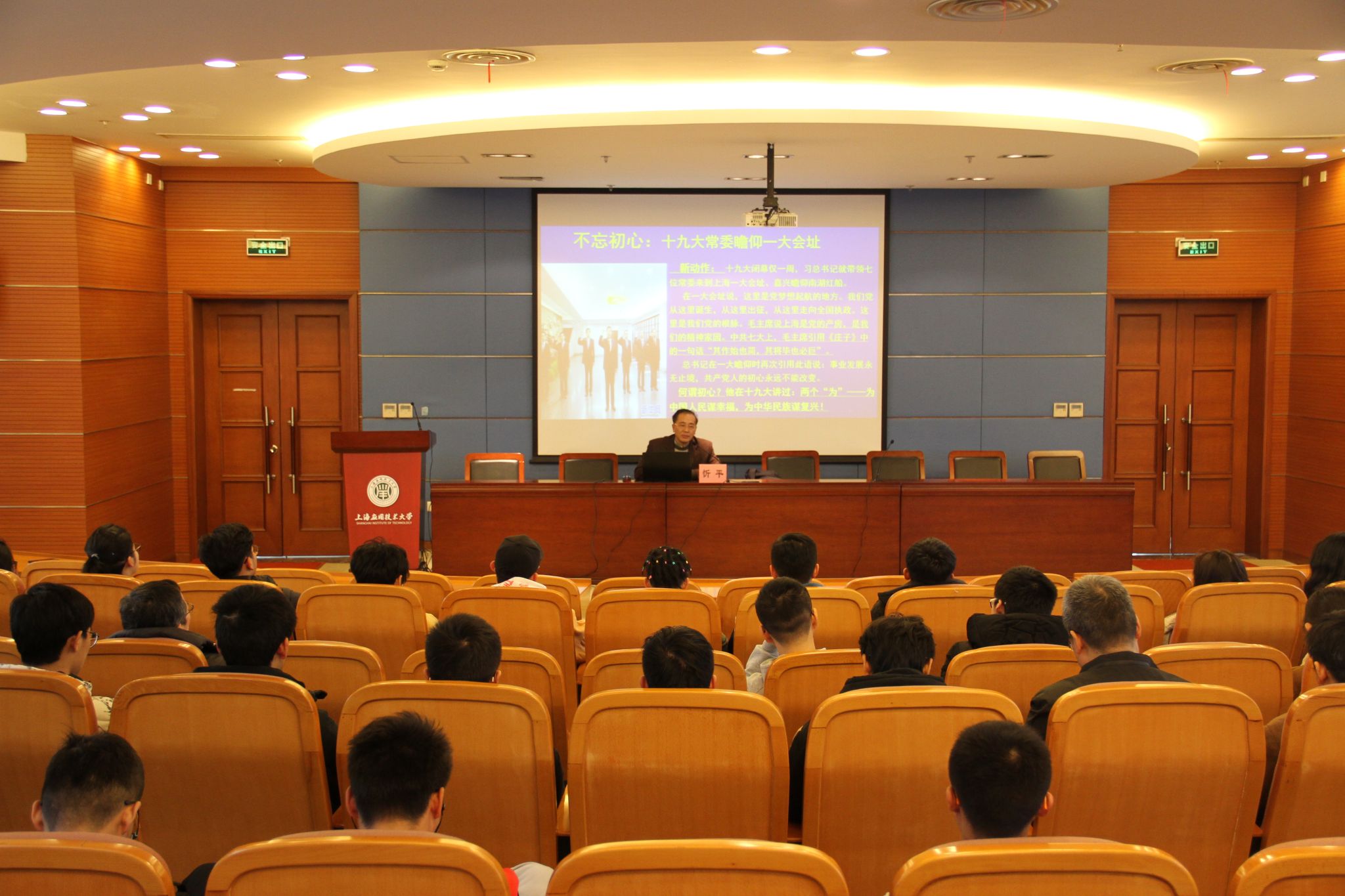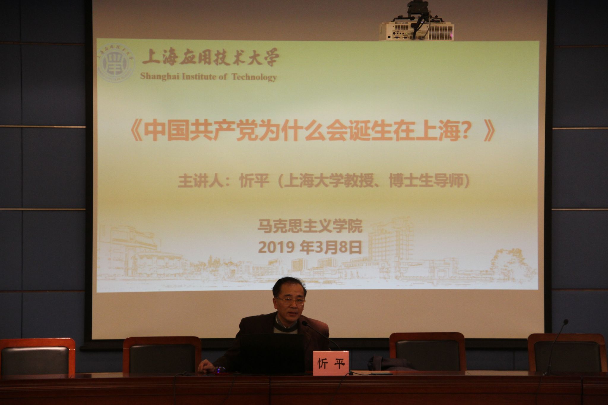 为深入学习贯彻习近平新时代中国特色社会主义思想,迎接新中国成立70周年,激励广大师生“不忘初心、牢记使命”,3月8日下午,我院在行政楼117举办主题报告会,邀请上海大学原党委副书记忻平教授作“中国共产党为什么会诞生在上海”专题报告,参加会议的有我院教师和知行学社成员100多名。会议由我院直属党支部副书记杨燕华主持。