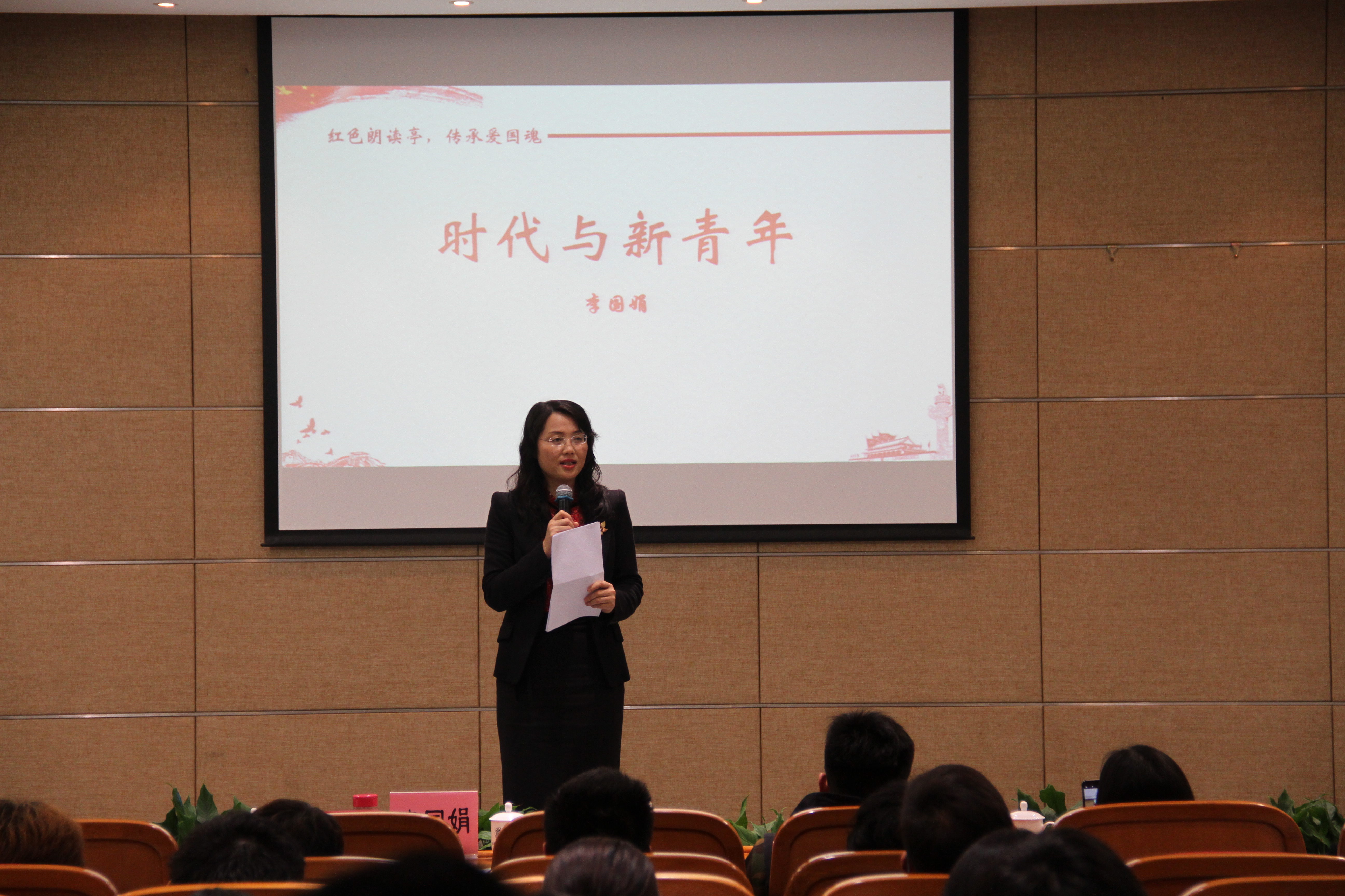 4月29日,由校团委、马克思主义学院主办,知行学社承办的“扬五四爱国魂,铸不朽青春志”纪念五四运动100周年活动在图书馆B101举行。人事处处长、教师工作部部长、马克思主义学院院长李国娟,校团委副书记周雄才,马克思主义学院教师杨燕华、周贇、马光霞、潘喜颜、吴云翔、文强强以及知行学社200余人参加了此次活动。